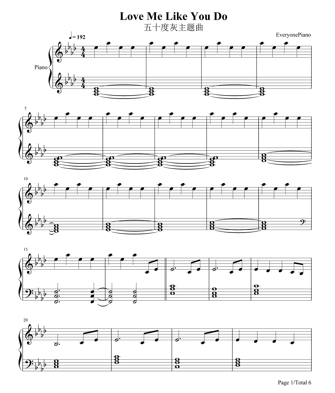 钢琴Ellie Goulding《Love Me Like You Do》钢琴谱 五十度灰主题曲