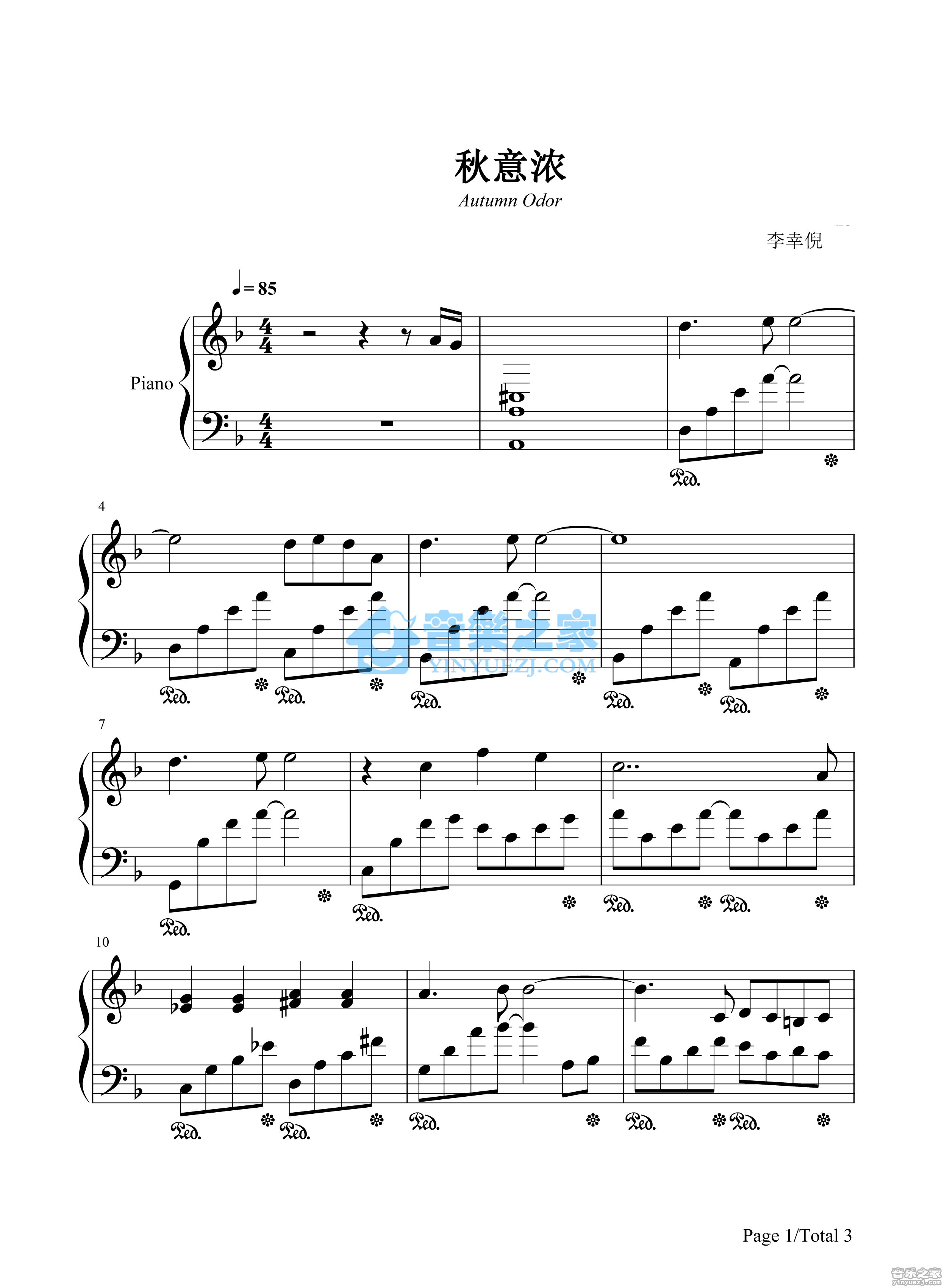 我的野蛮女友《D大调卡农》钢琴五线谱...