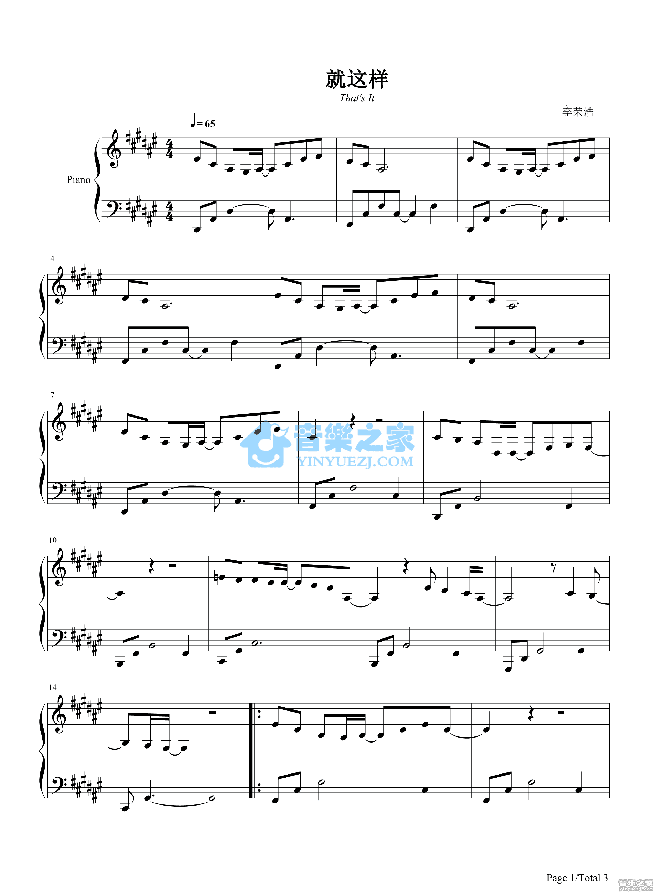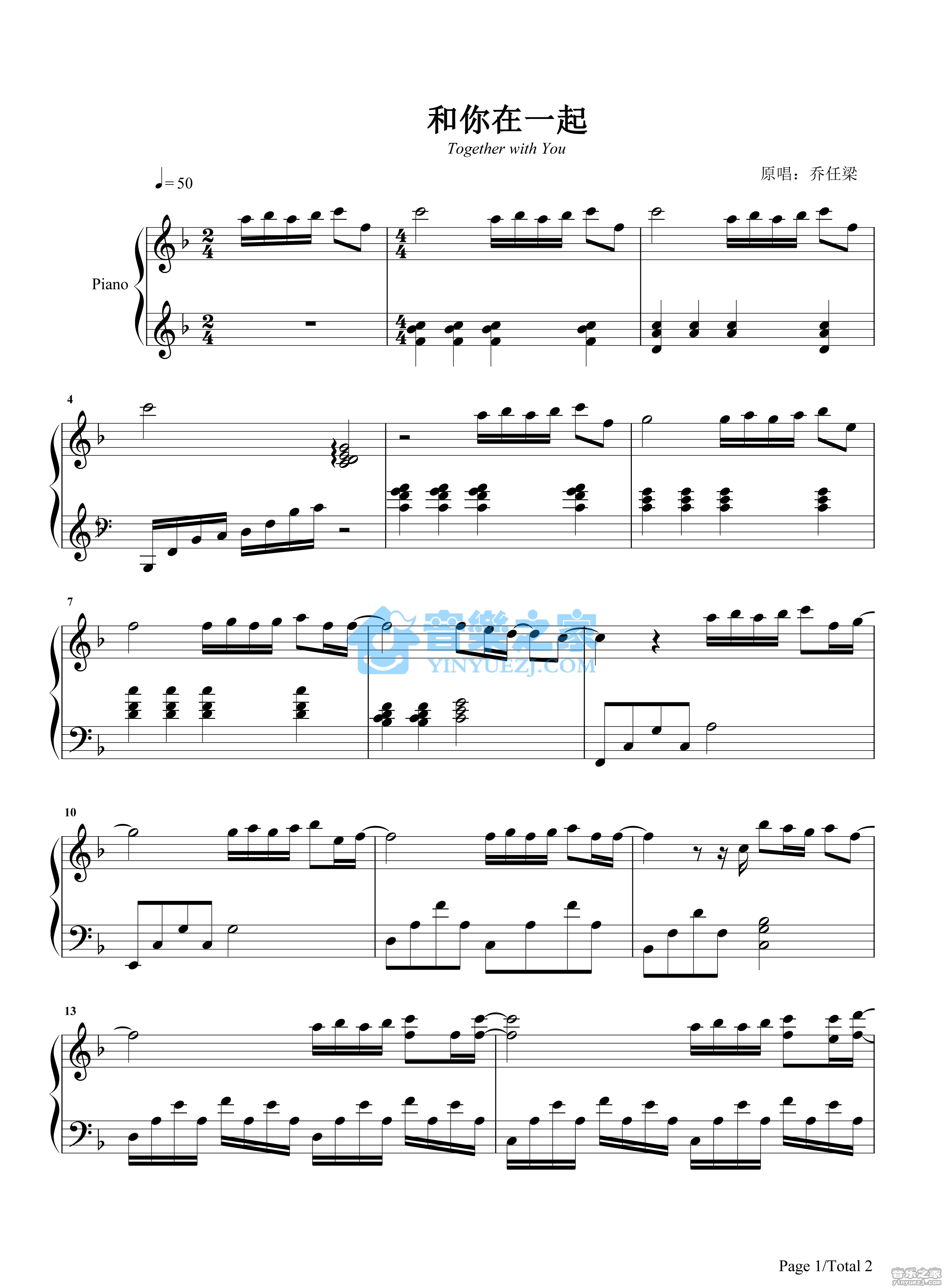 钢琴乔任梁《和你在一起》钢琴五线谱
