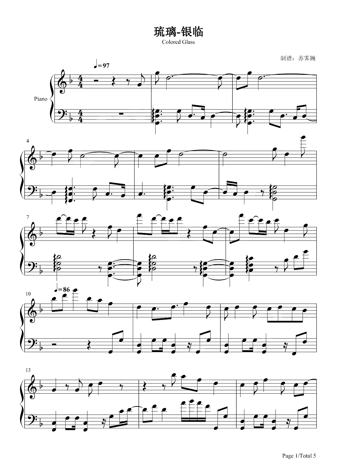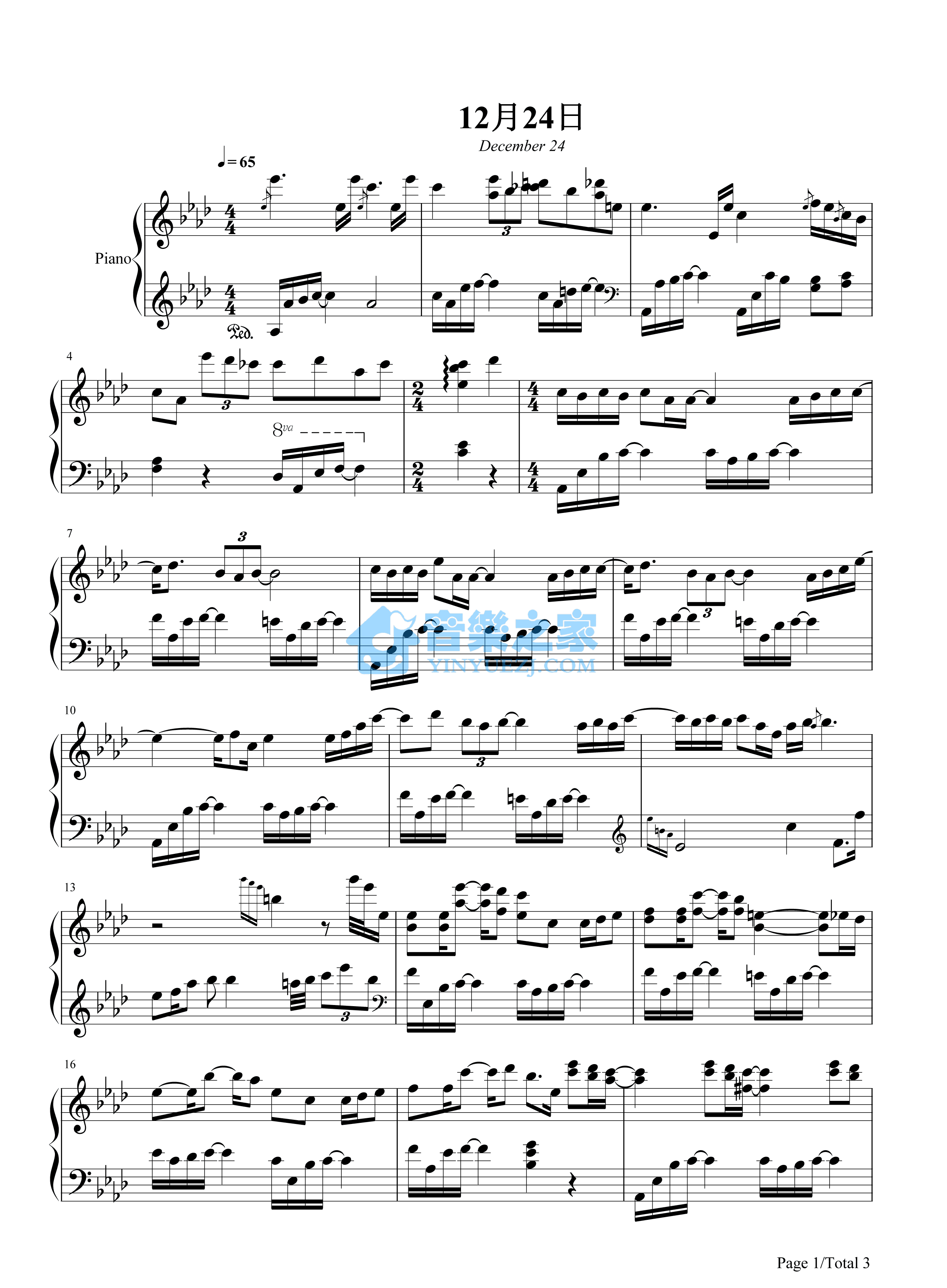 钢琴完整版 IU《12月24日》钢琴五线谱