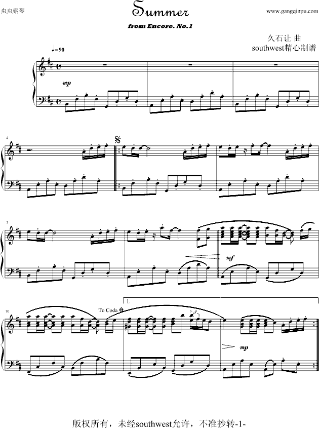 钢琴summer(菊次郎的夏天)原版-钢琴谱(钢琴曲)-久石让