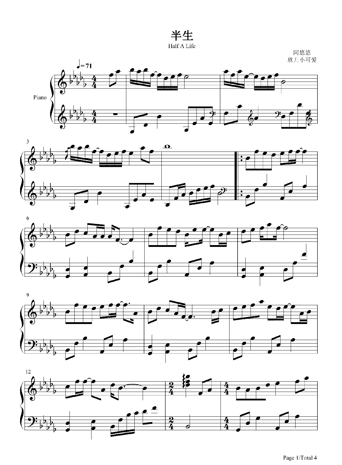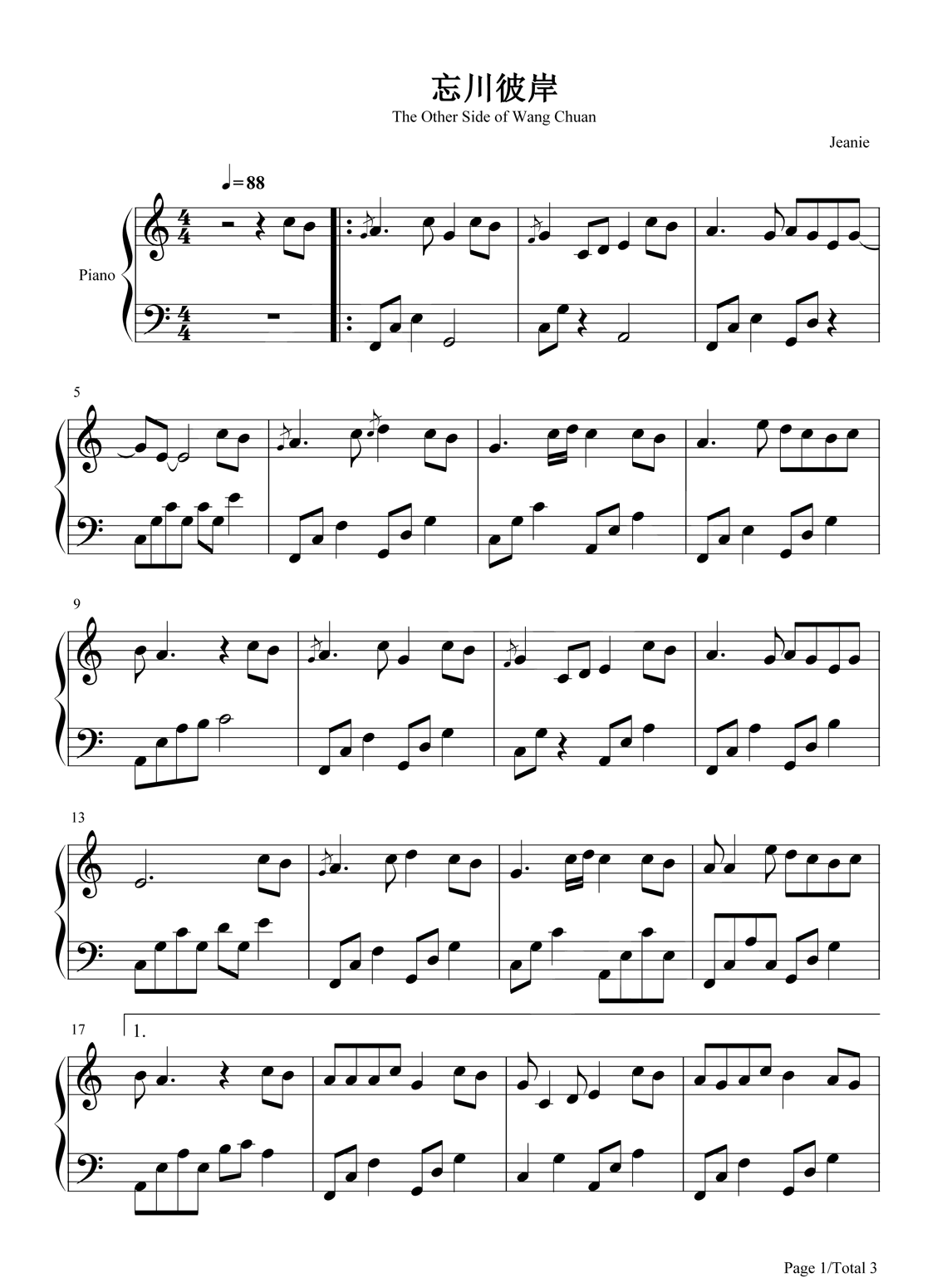 钢琴零一九零贰《忘川彼岸》钢琴谱