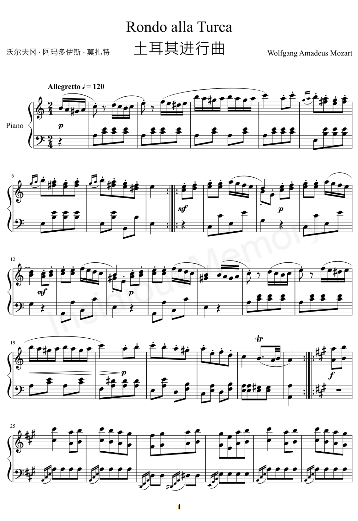 钢琴莫扎特《土耳其进行曲》钢琴谱
