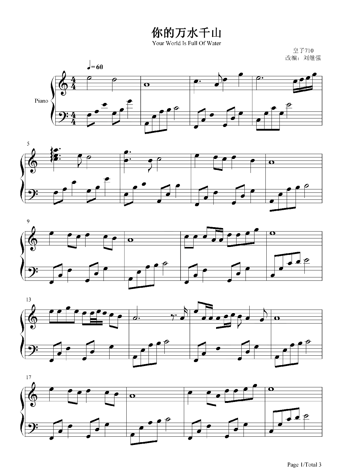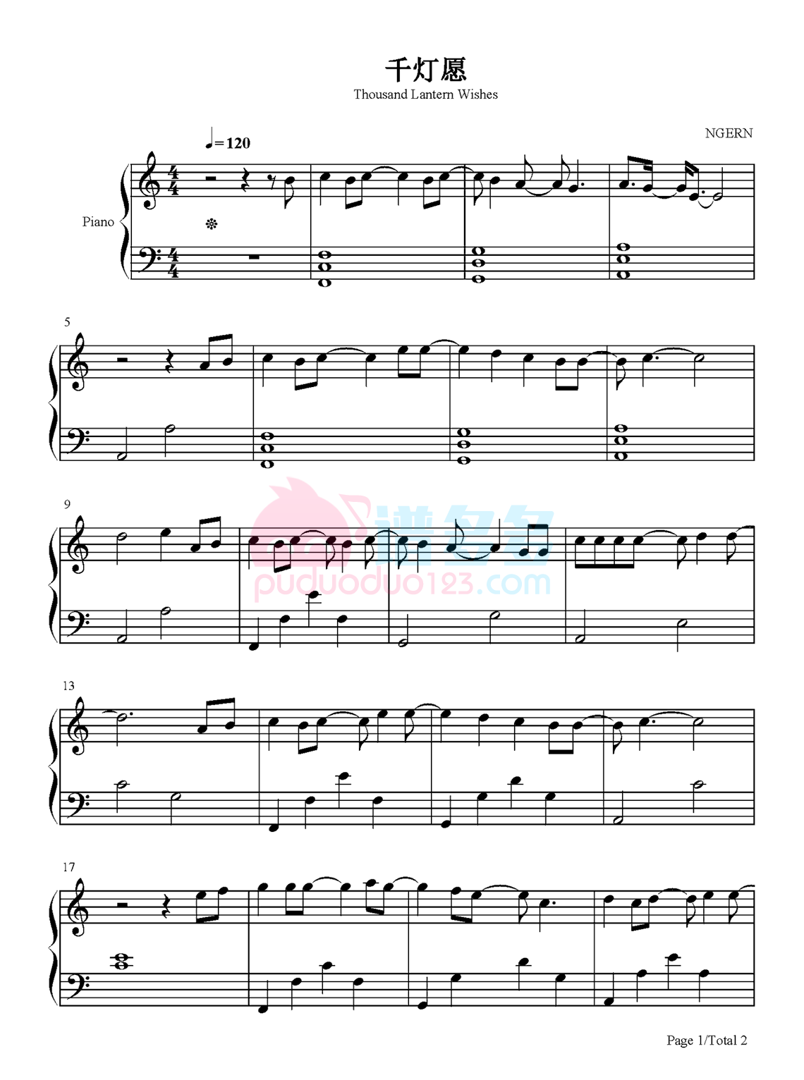 弦森《千灯愿》钢琴谱(C调简单版)...