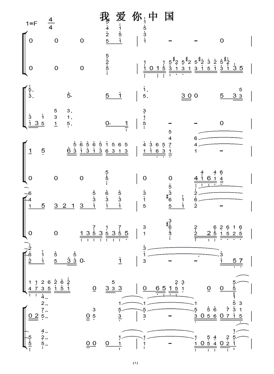 钢琴《我爱你中国》双手简谱钢琴谱(原版)