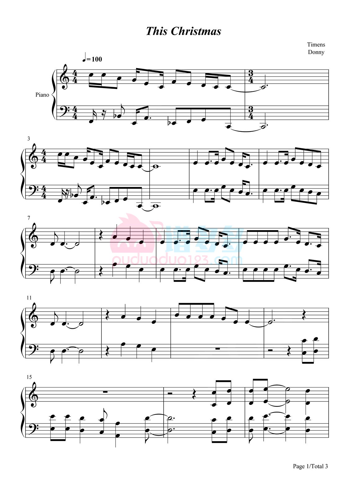 《ThisChristmas》钢琴谱(双手简谱和五线谱)...