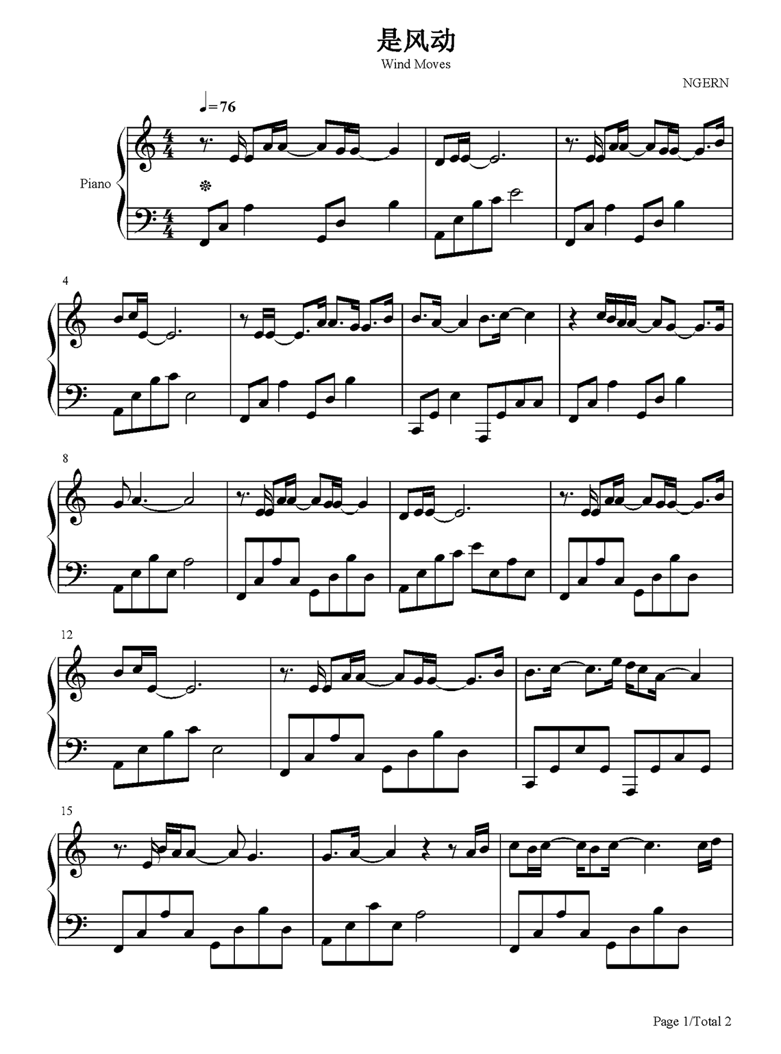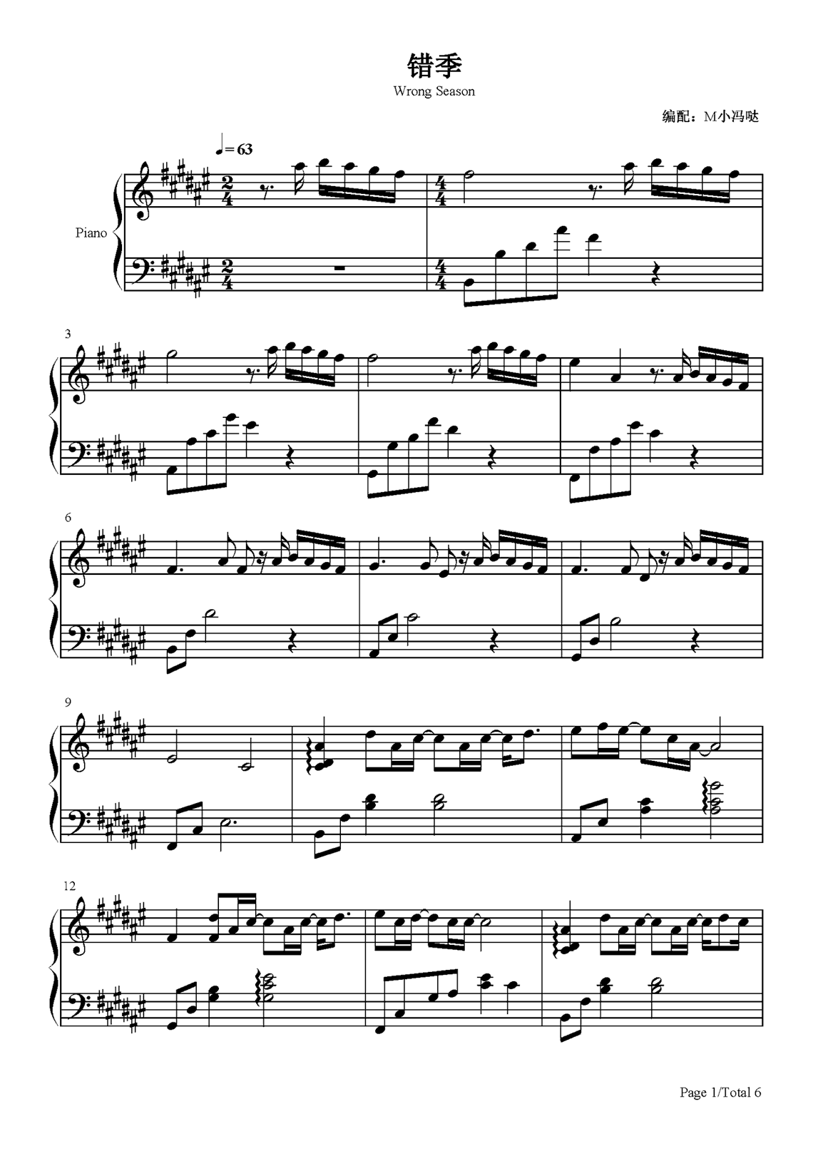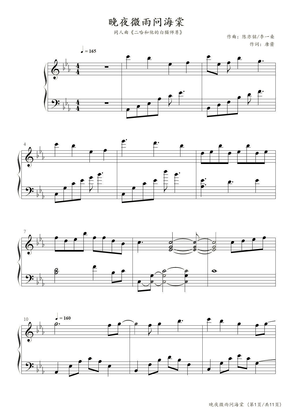 钢琴艾辰《晚夜微雨问海棠》钢琴谱