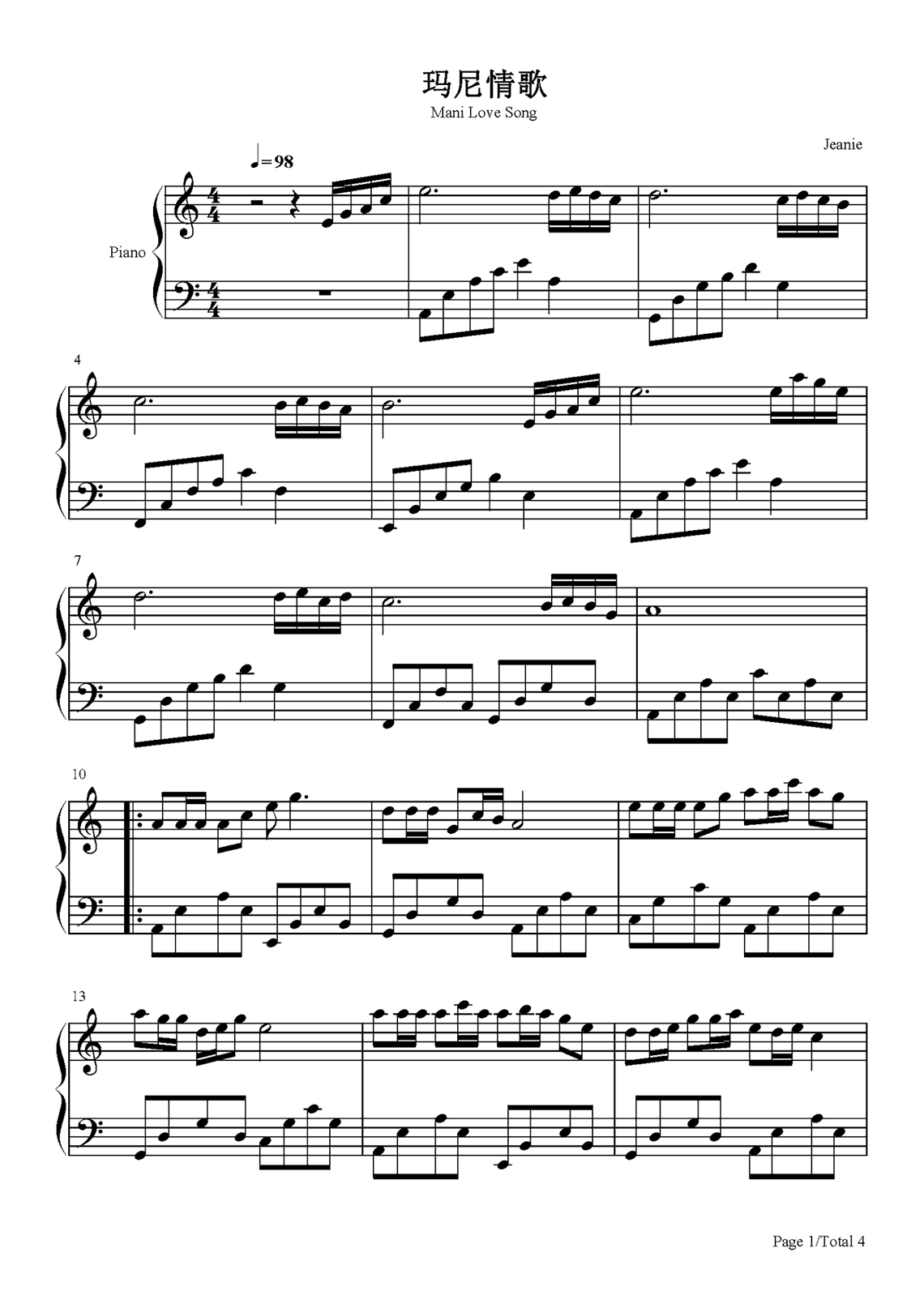 钢琴上官红燕《玛尼情歌》钢琴谱