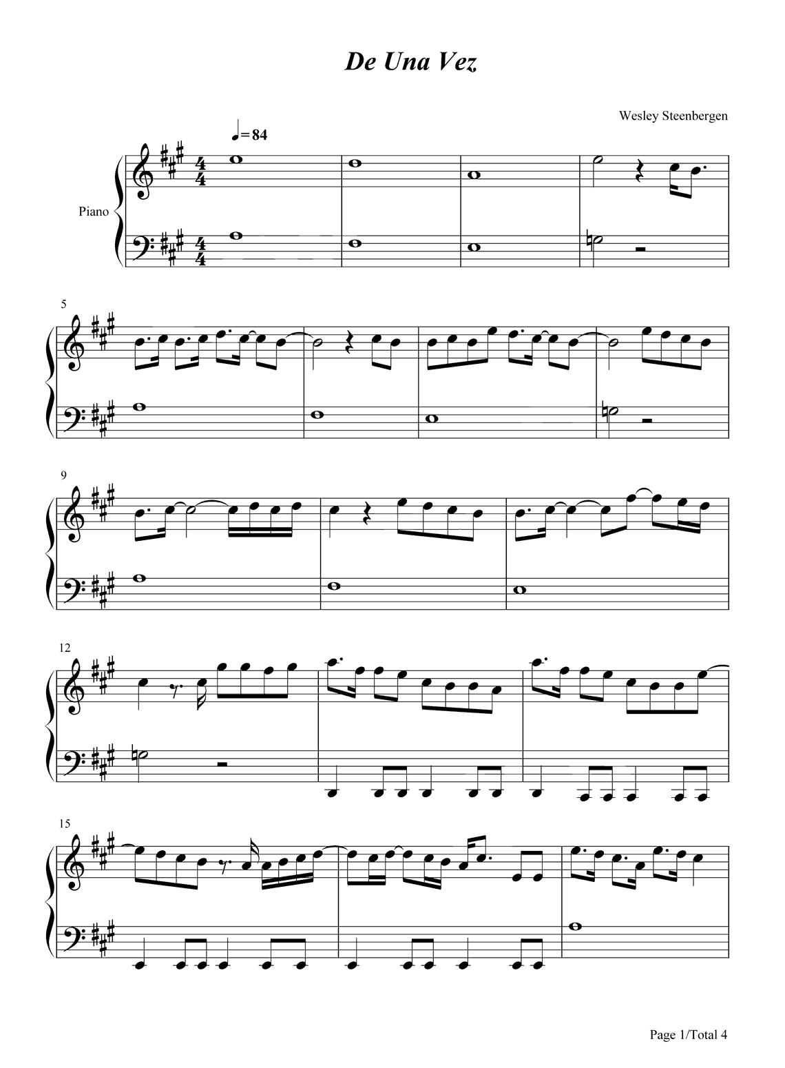 钢琴Selena Gomez《De Una Vez》钢琴谱五线谱、双手简谱
