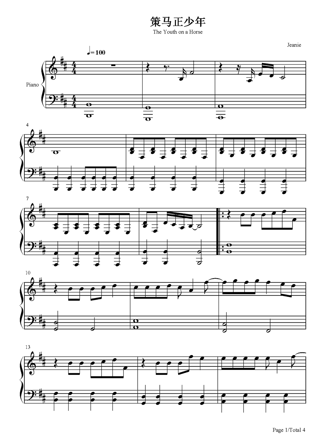 钢琴肖战《策马正少年》钢琴谱-简谱五线谱两版