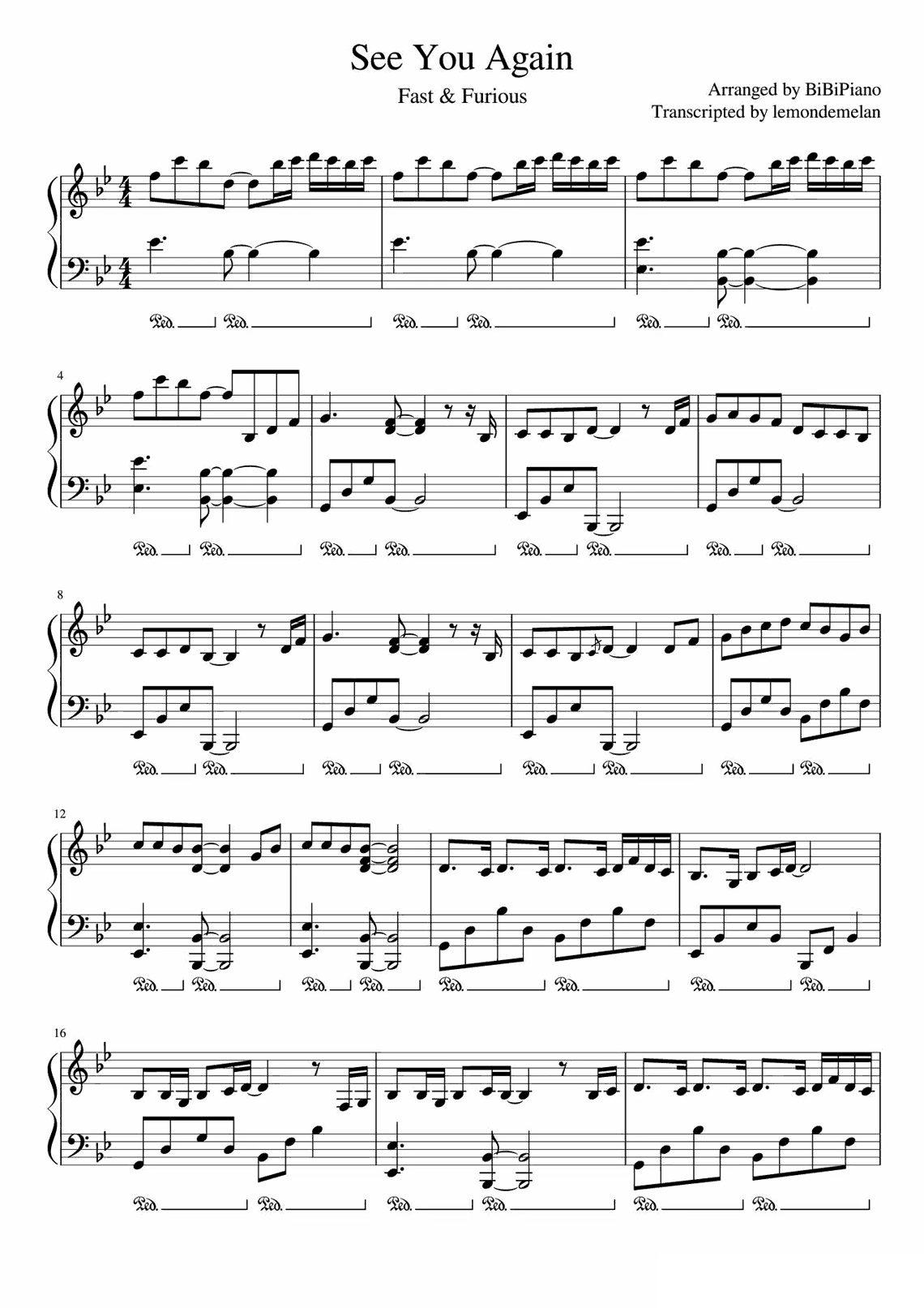 钢琴《See You Again》钢琴谱(速度与激情7片尾曲)
