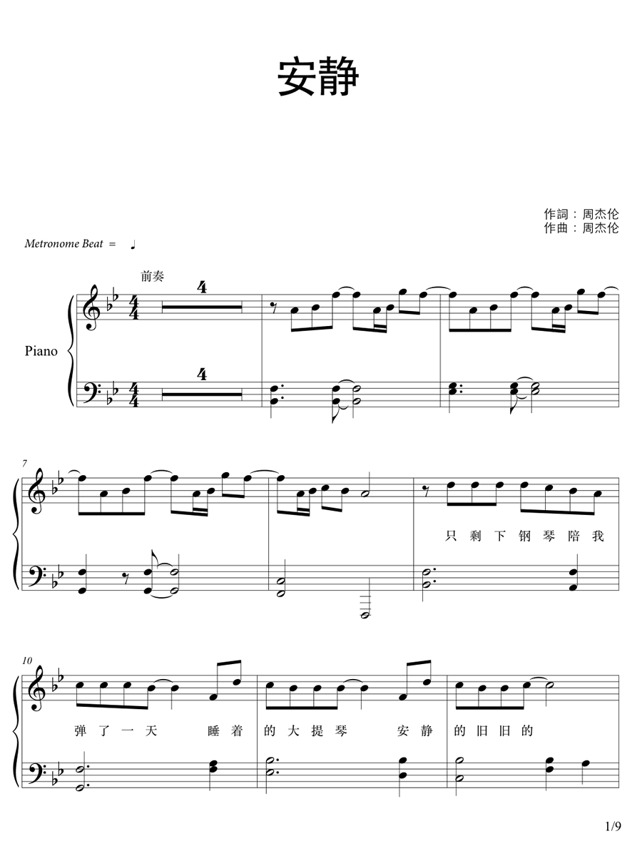 巴赫《G弦上的咏叹调》钢琴五线谱(CF末日剧场BGM)...