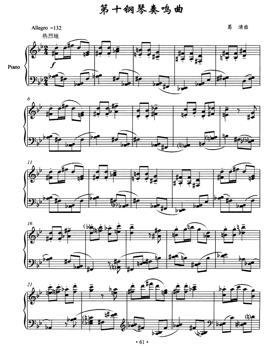 第十钢琴奏鸣曲(葛清作曲版)钢琴谱...