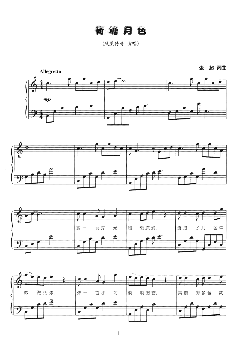 钢琴凤凰传奇《荷塘月色》钢琴谱