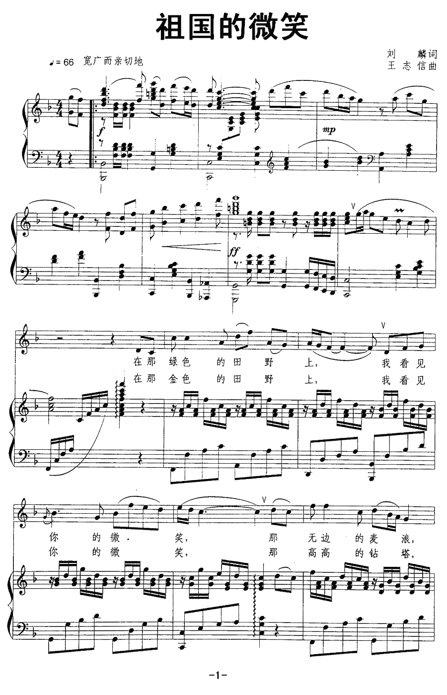 兰天《尕妹妹的山丹花儿开》钢琴谱...