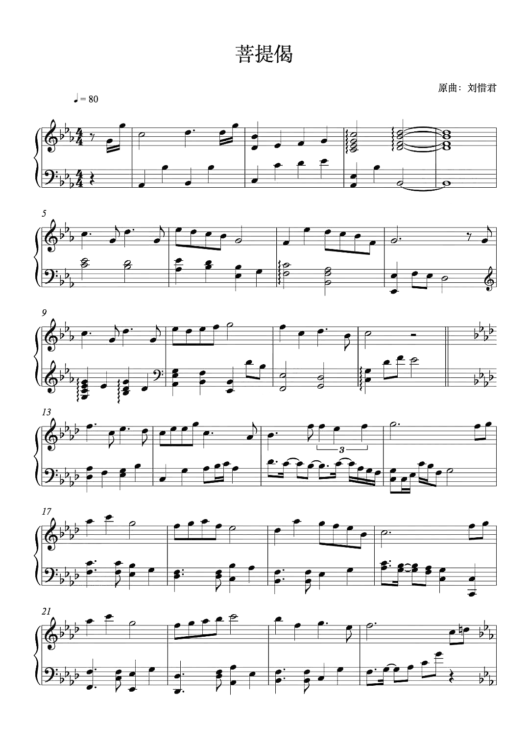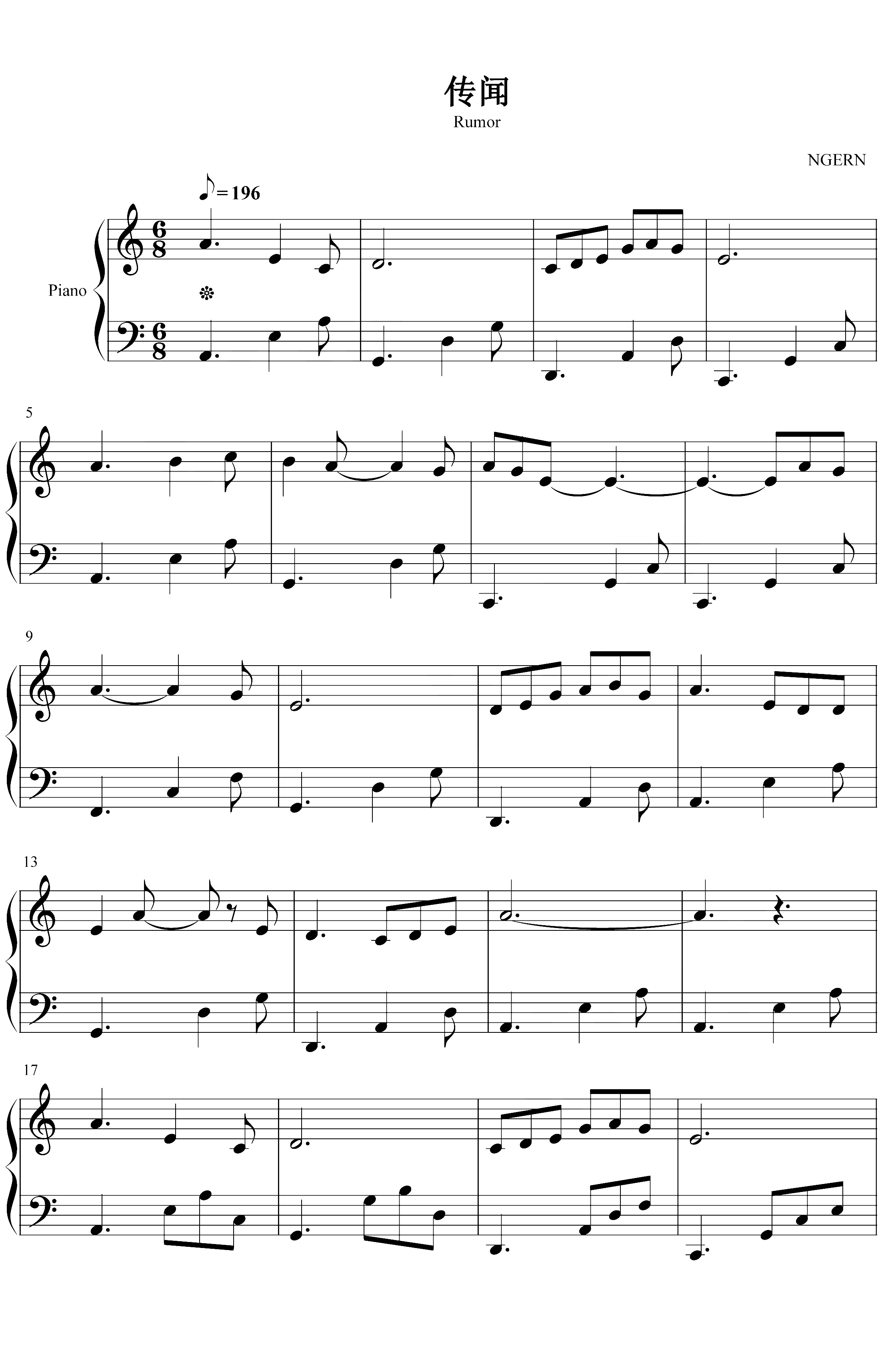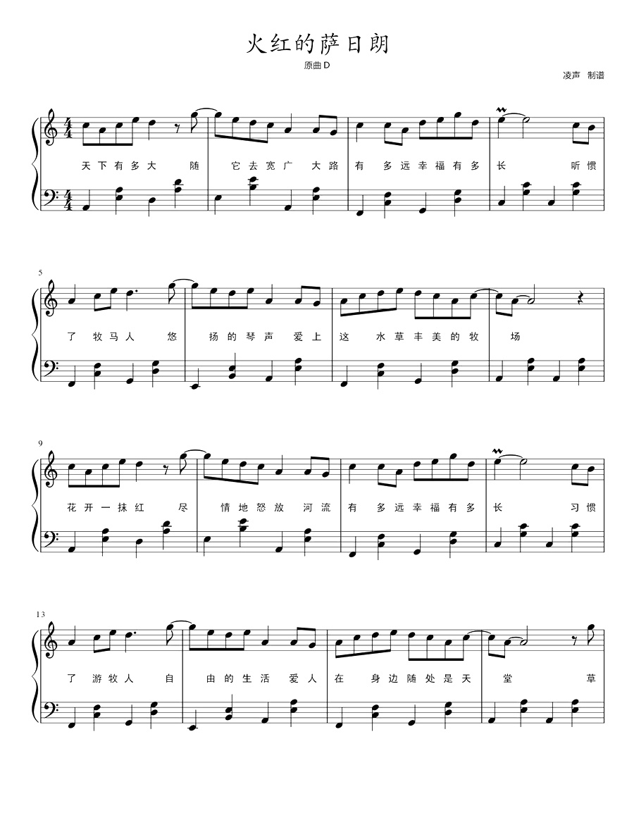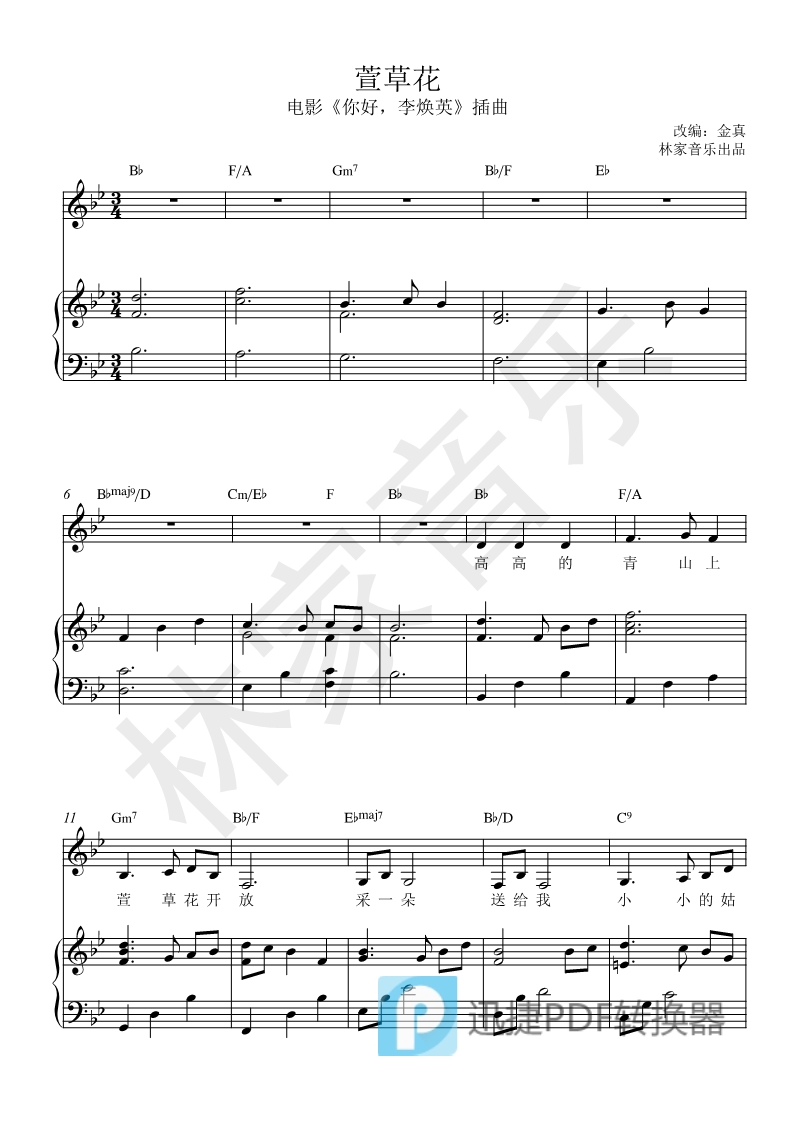 《萱草花》钢琴谱_张小斐弹唱谱...