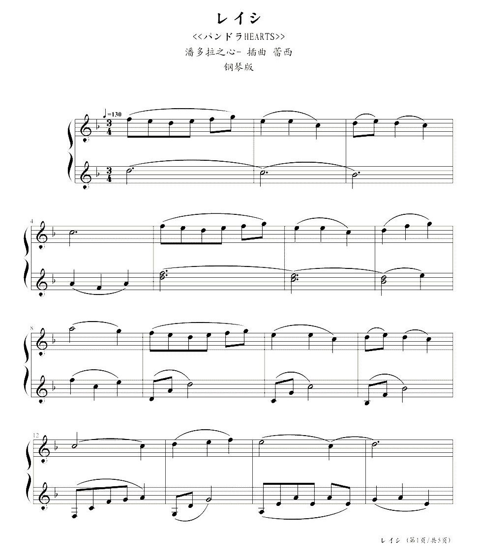 动漫《潘多拉之心》插曲《蕾西》钢琴谱...