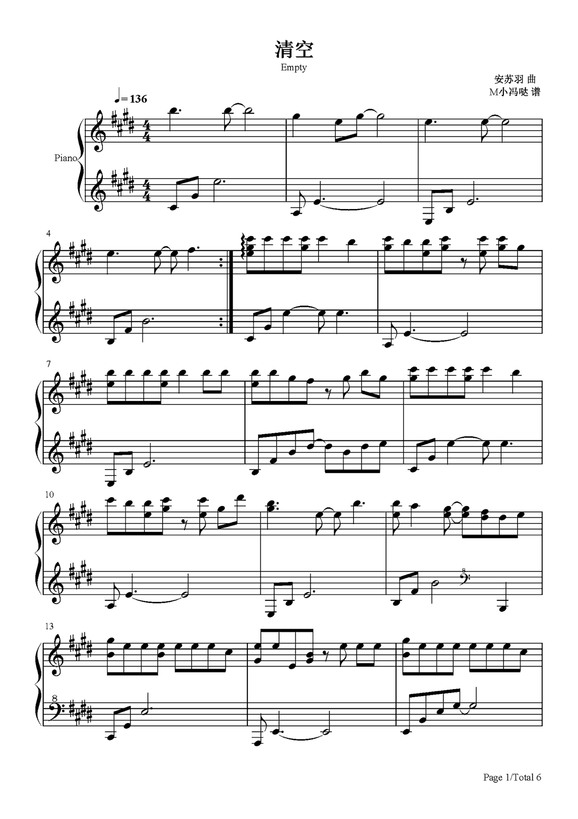 钢琴王忻辰/苏星婕原唱的《清空》钢琴谱