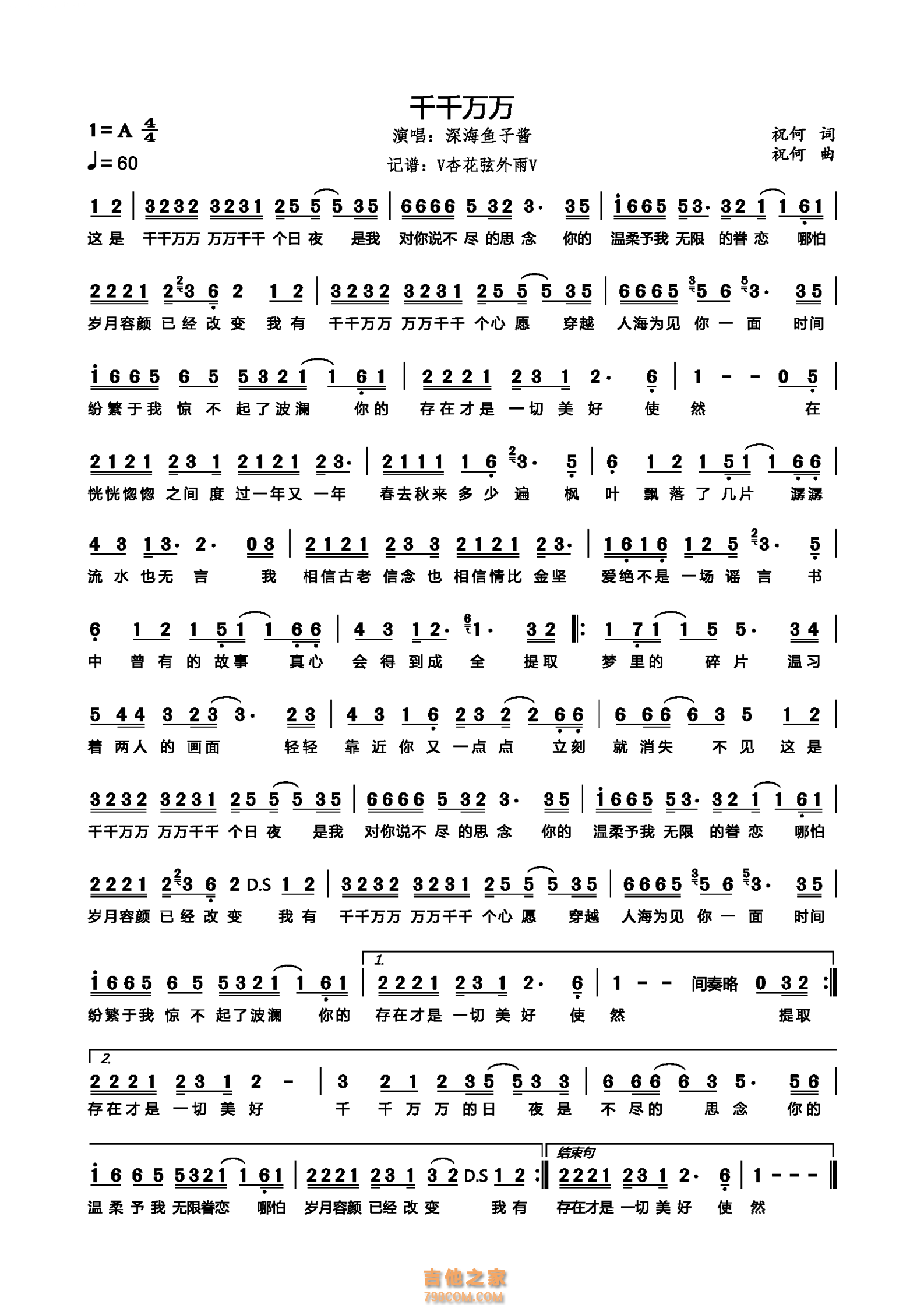 深海鱼子酱《千千万万》简谱...