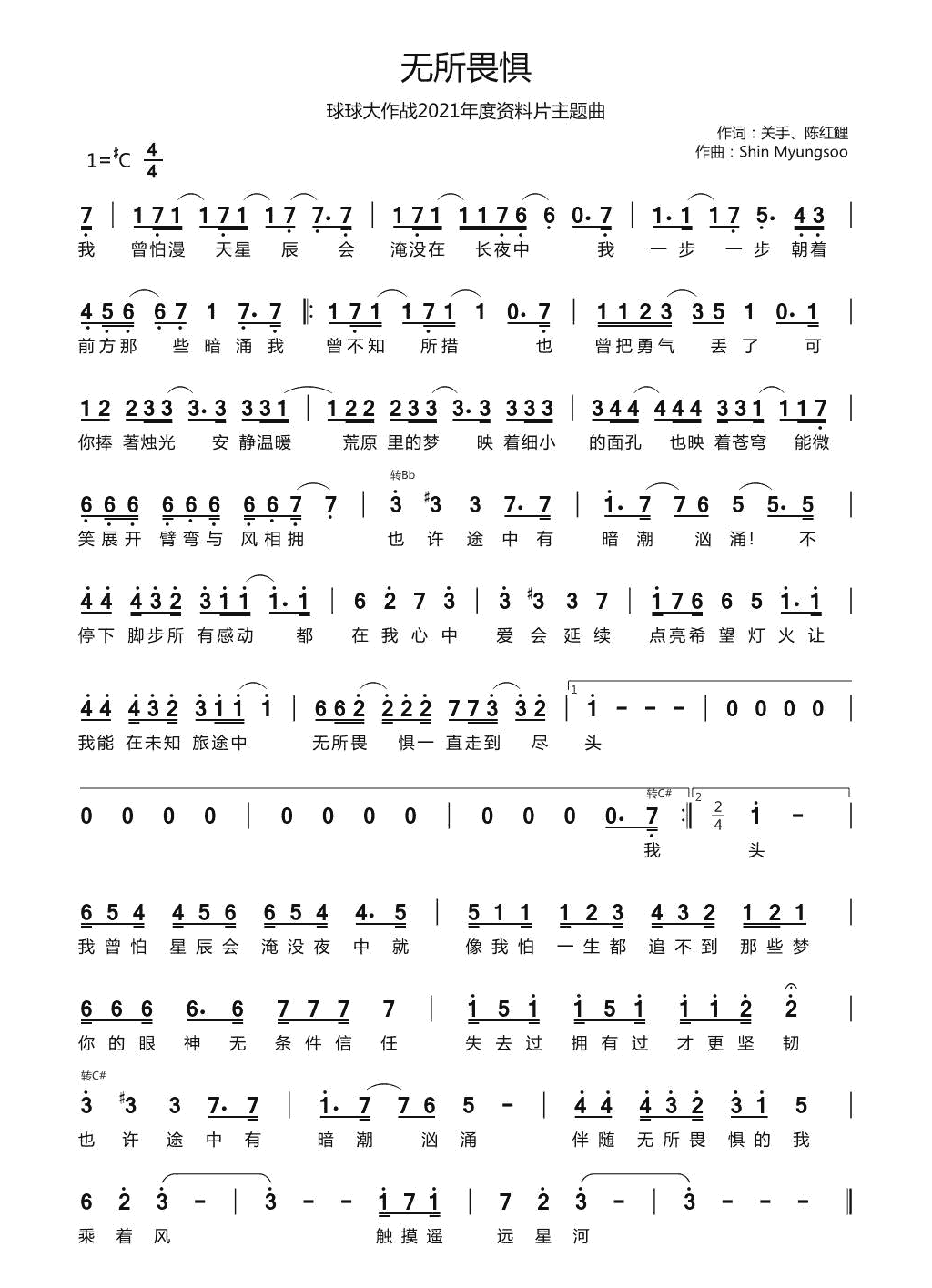 周深《无所畏惧》简谱...