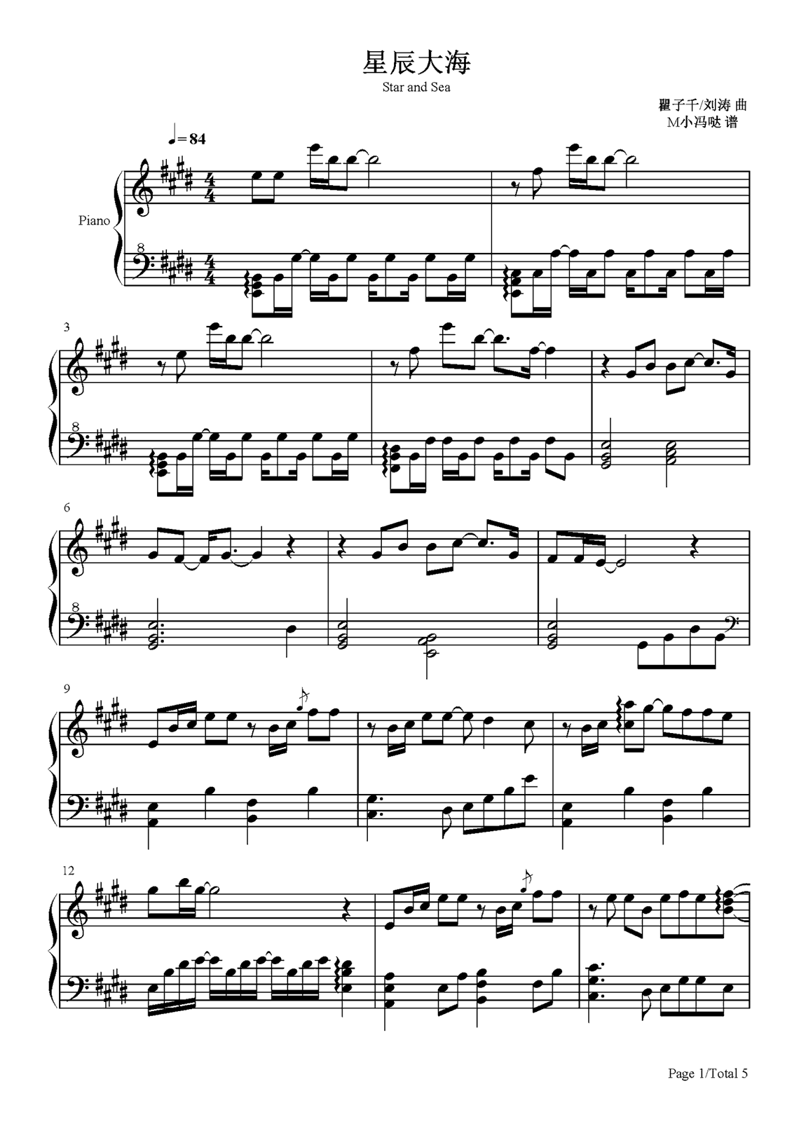 黄霄雲《星辰大海》钢琴谱...