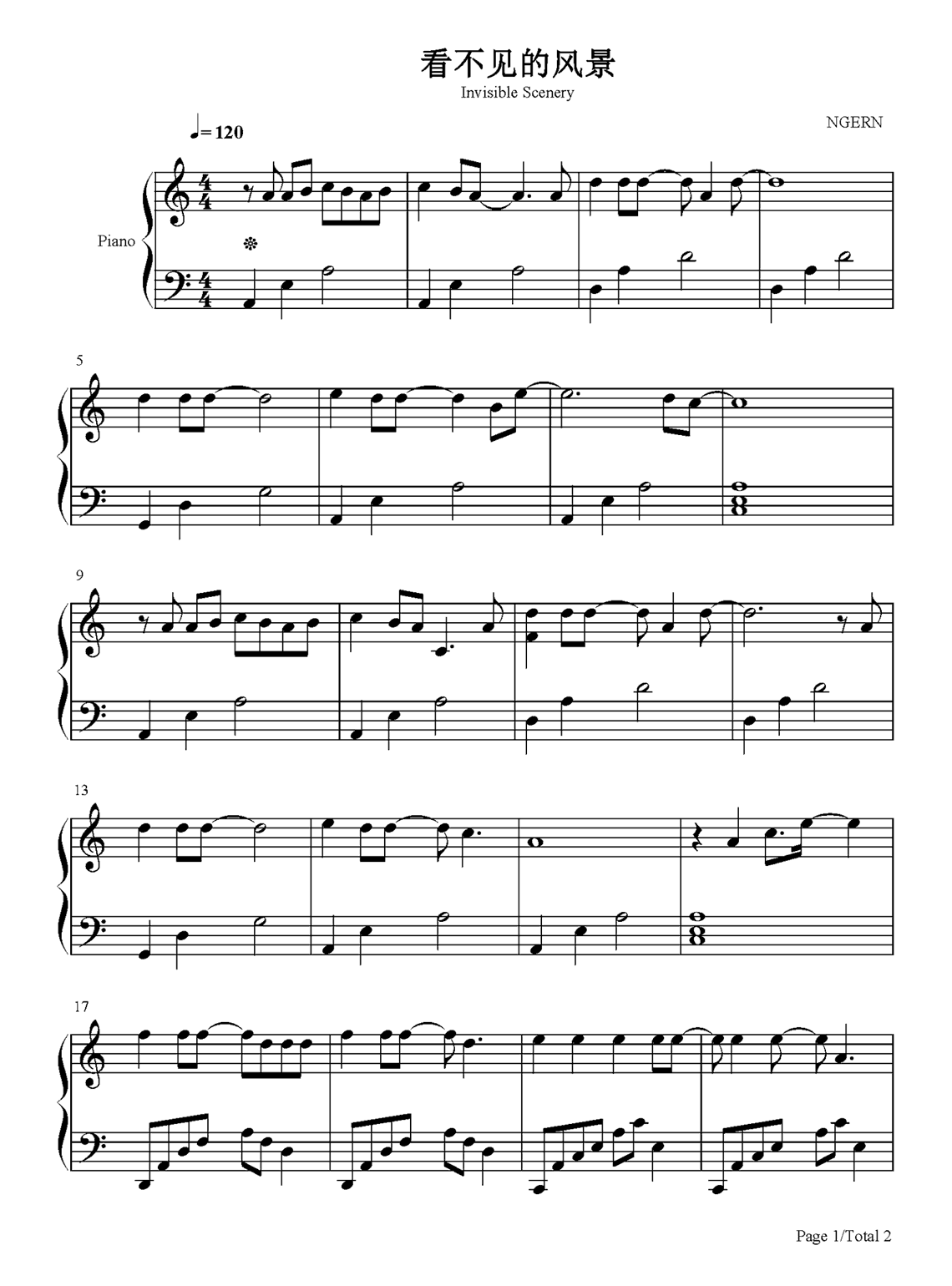 许嵩《看不见的风景》钢琴谱...