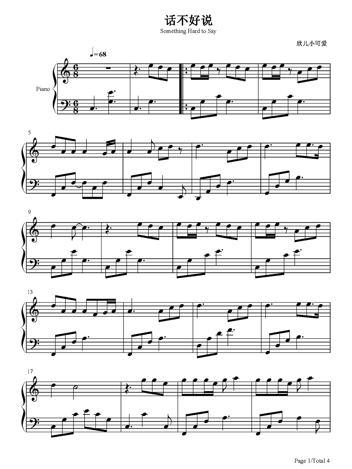 陈芳语《话不好说》钢琴谱...