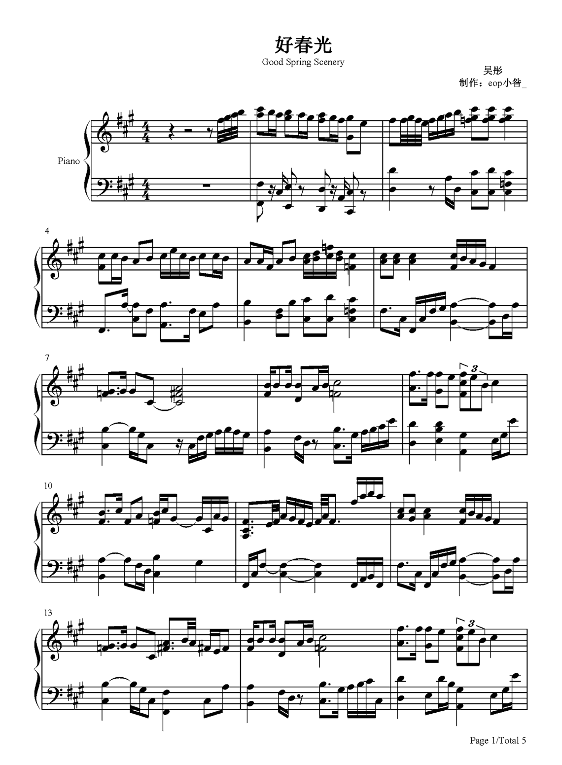 钢琴吴彤《好春光》贺岁版单曲钢琴谱