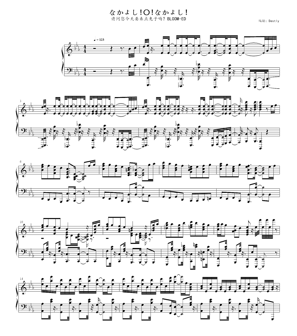 钢琴《请问您今天要来点兔子吗?》主题曲钢琴谱