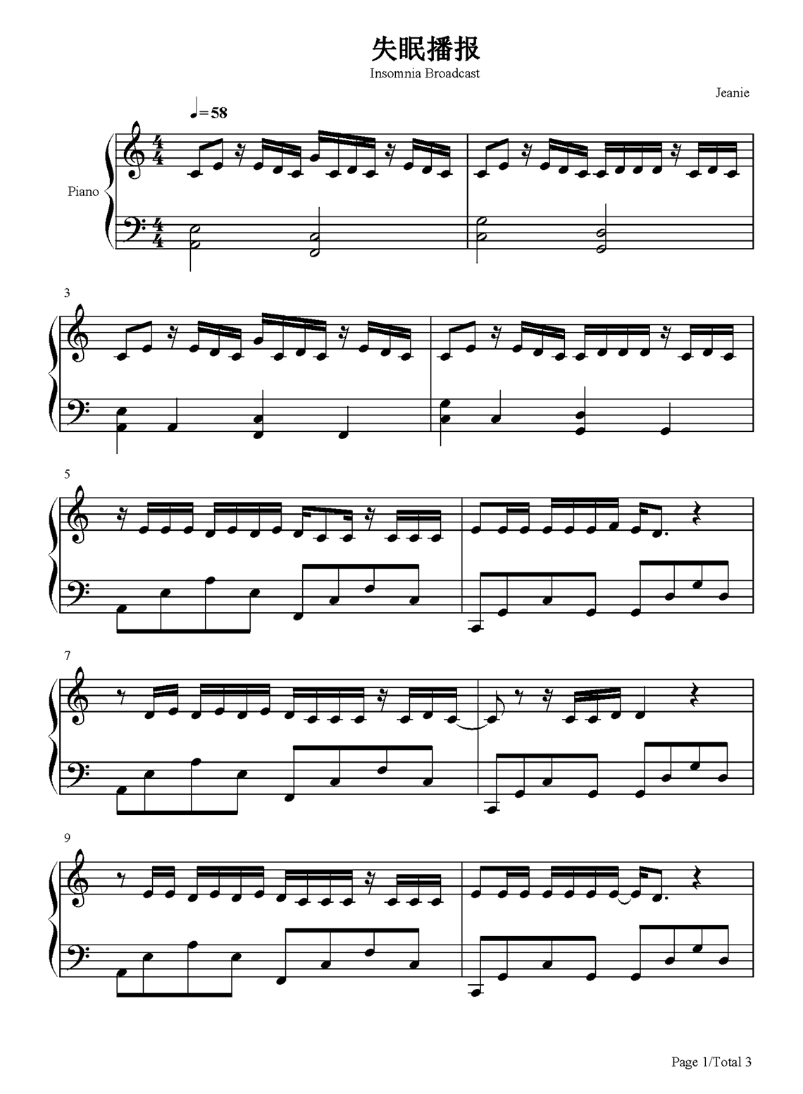 钢琴林晨阳《失眠播报》钢琴谱