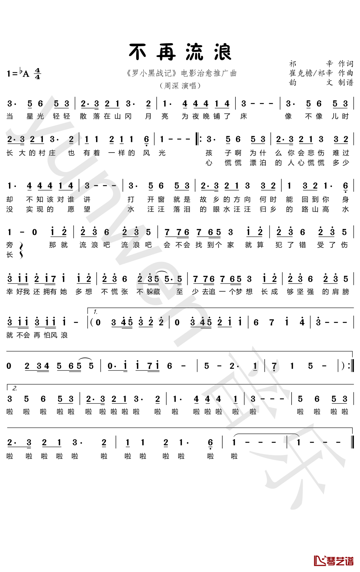 周深《不再流浪》简谱...