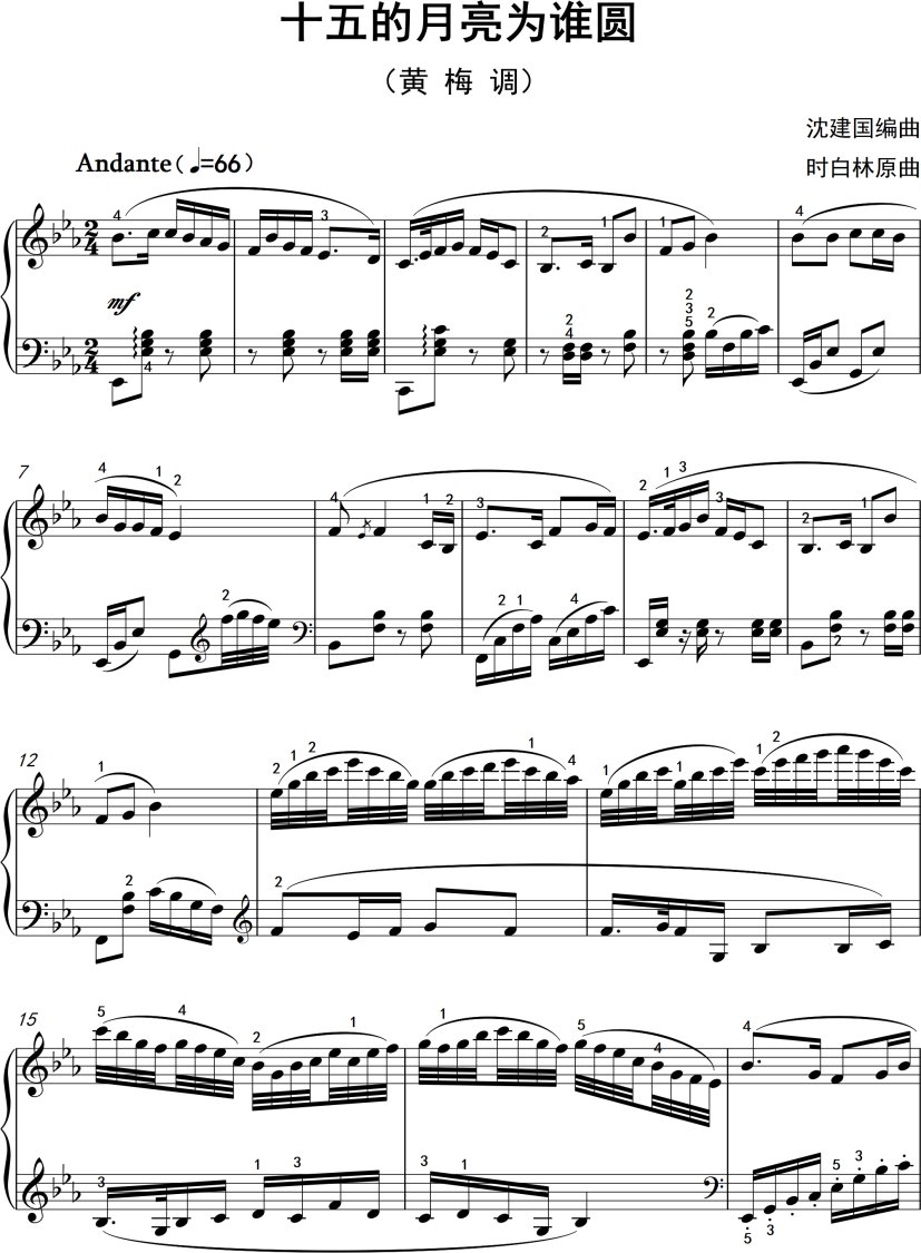 钢琴沈建国《十五的月亮为谁圆》钢琴谱