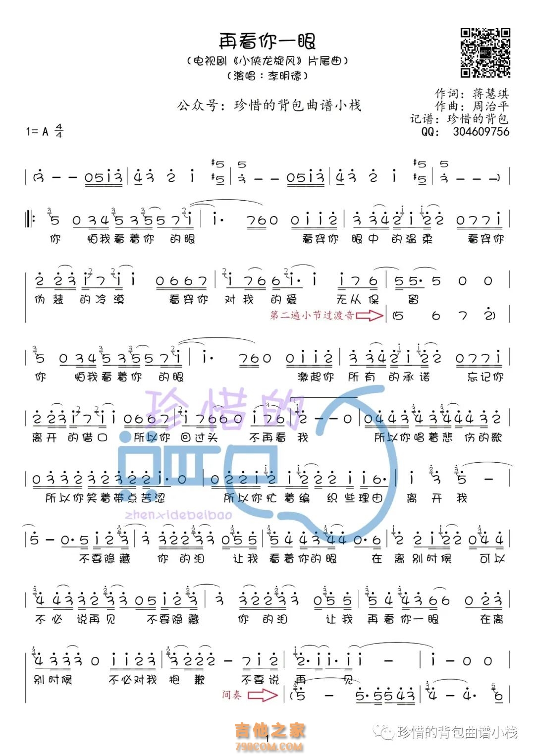 李明德《再看你一眼》简谱...