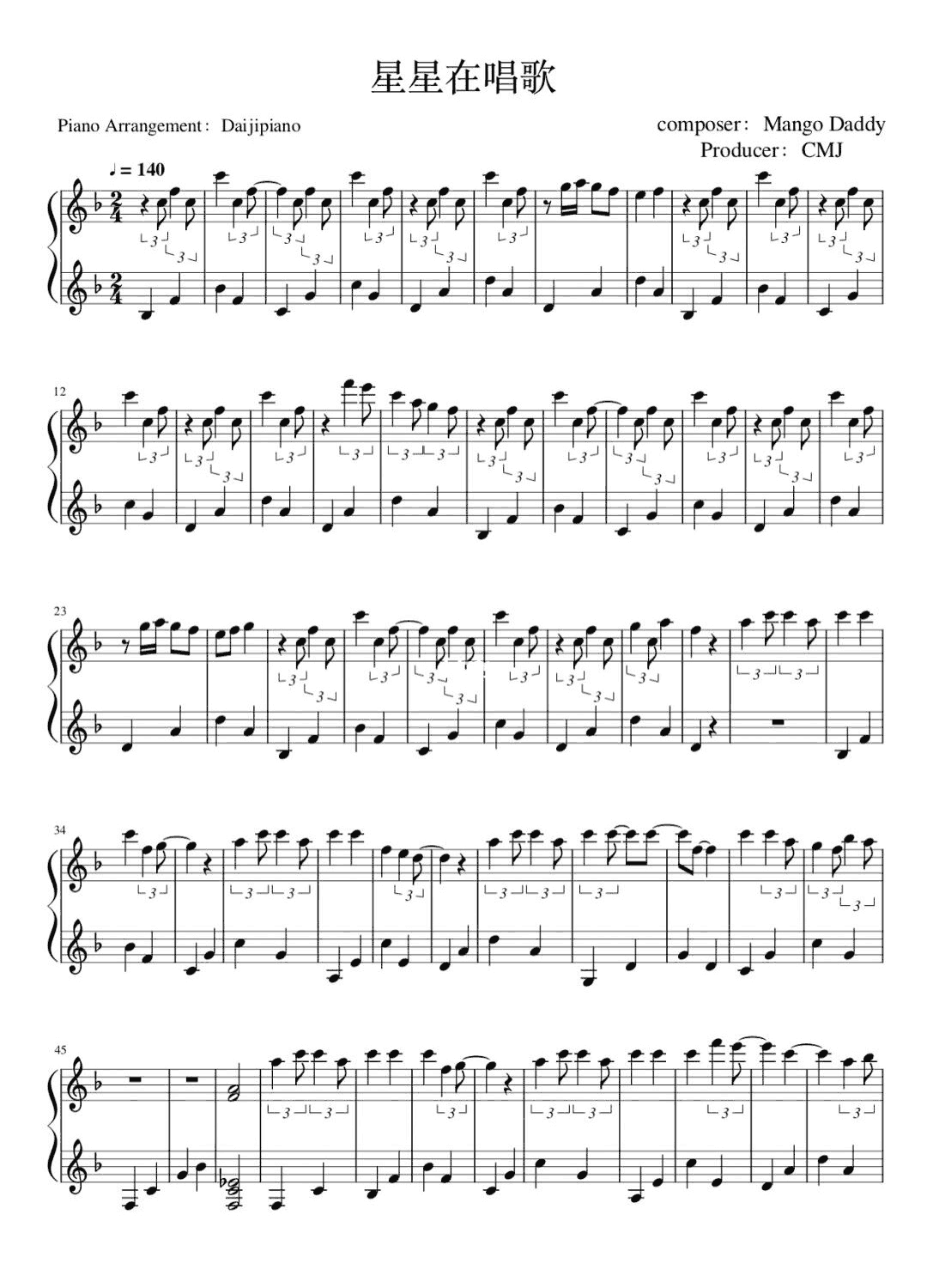 CMJ《星星在唱歌》钢琴谱...