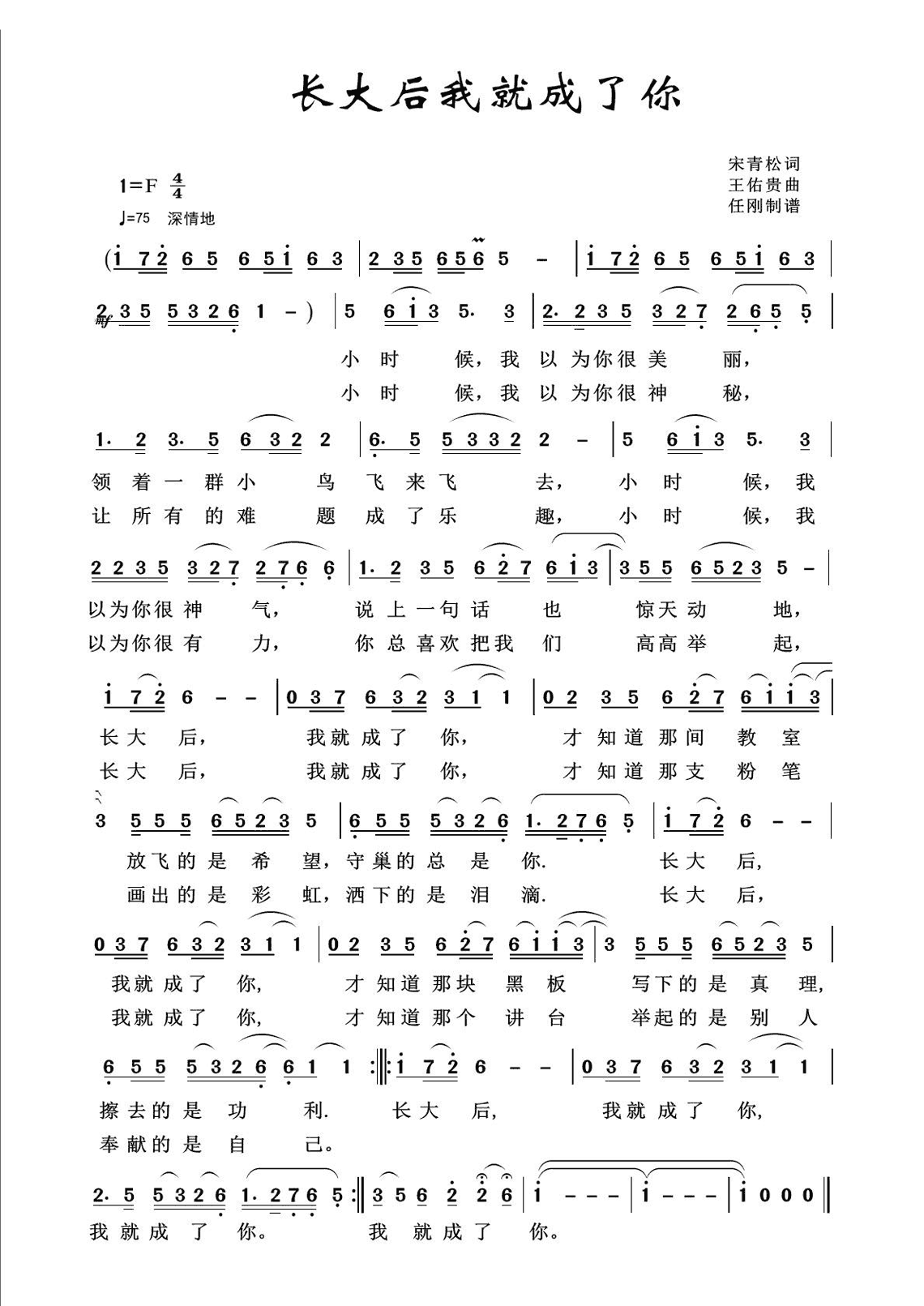 《长大后我就成了你》简谱...