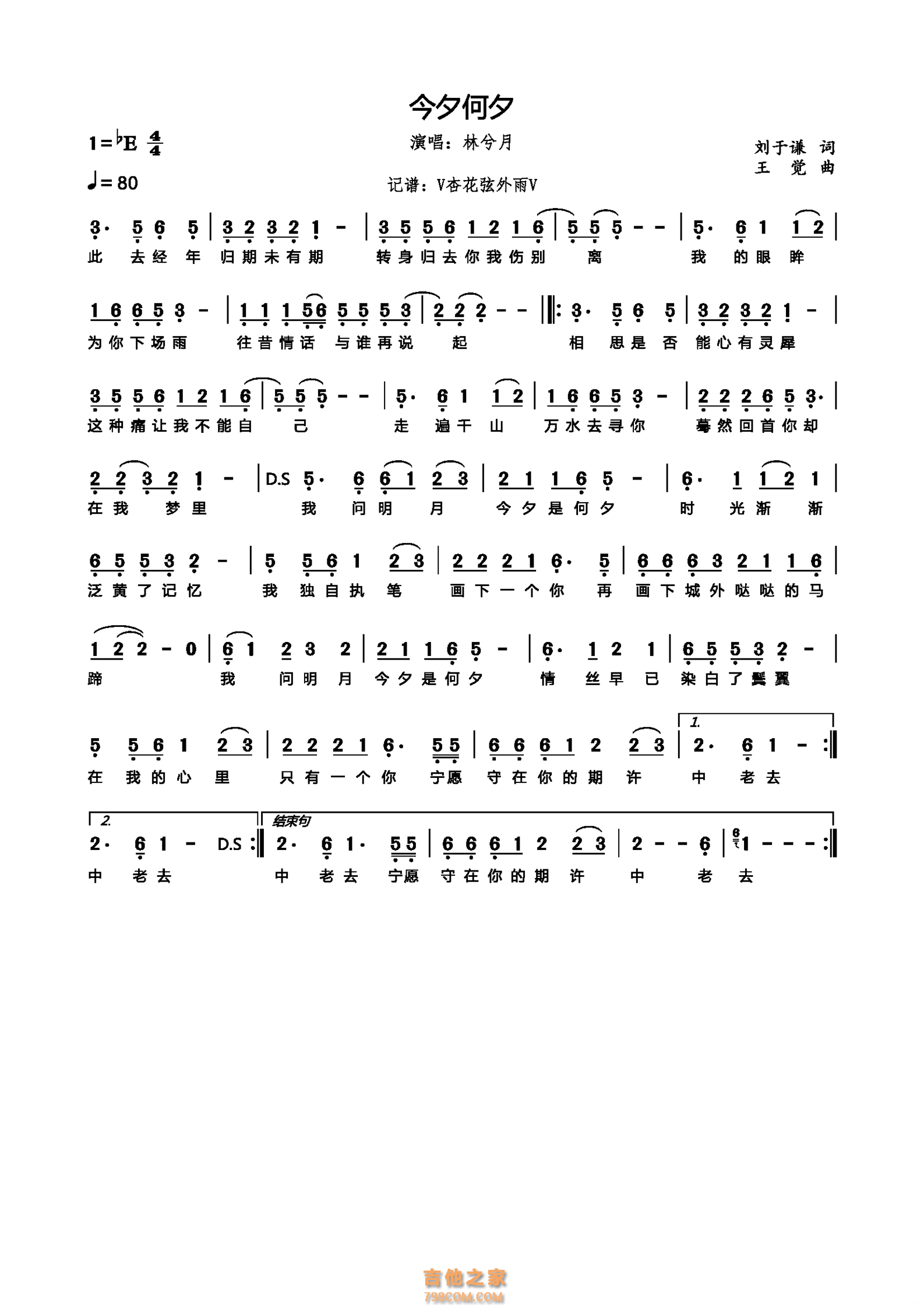 林兮月《今夕何夕》简谱...