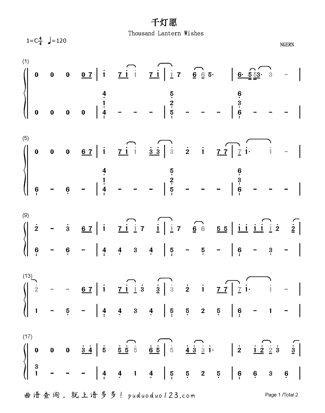 弦森《千灯愿》钢琴谱...