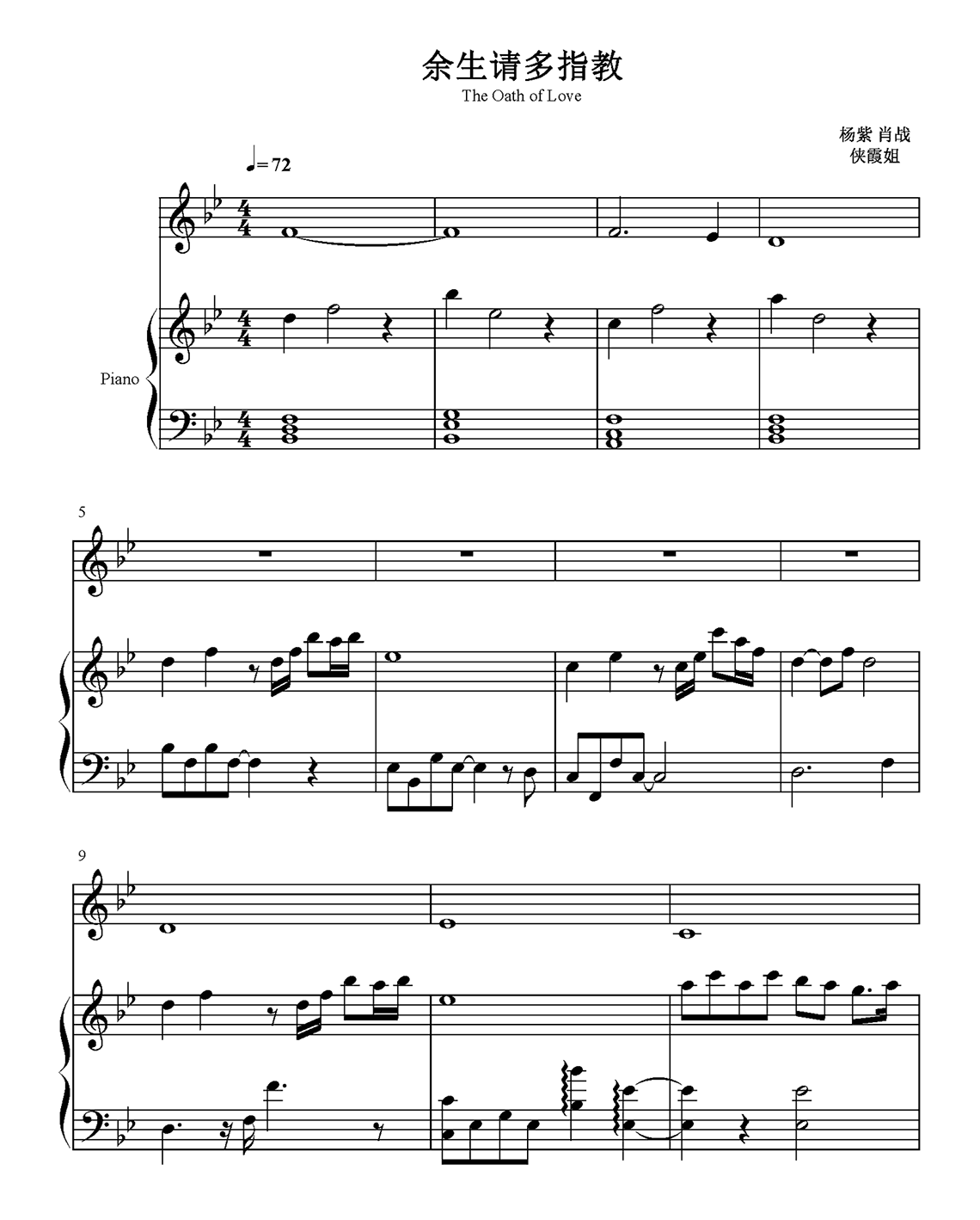 肖战、杨紫《余生请多指教》钢琴谱...