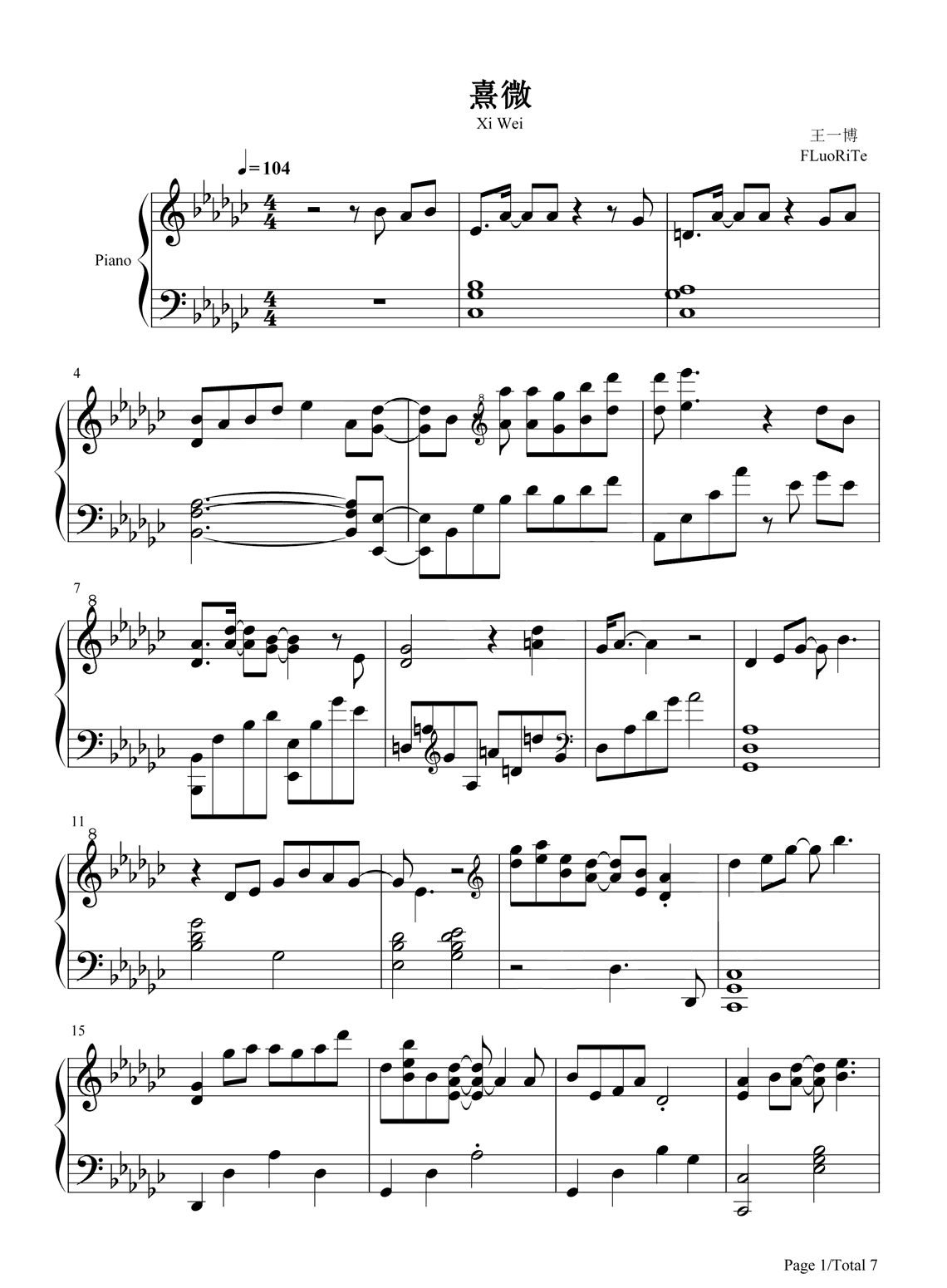 钢琴王一博《熹微》钢琴谱(电视剧《有翡》插曲)