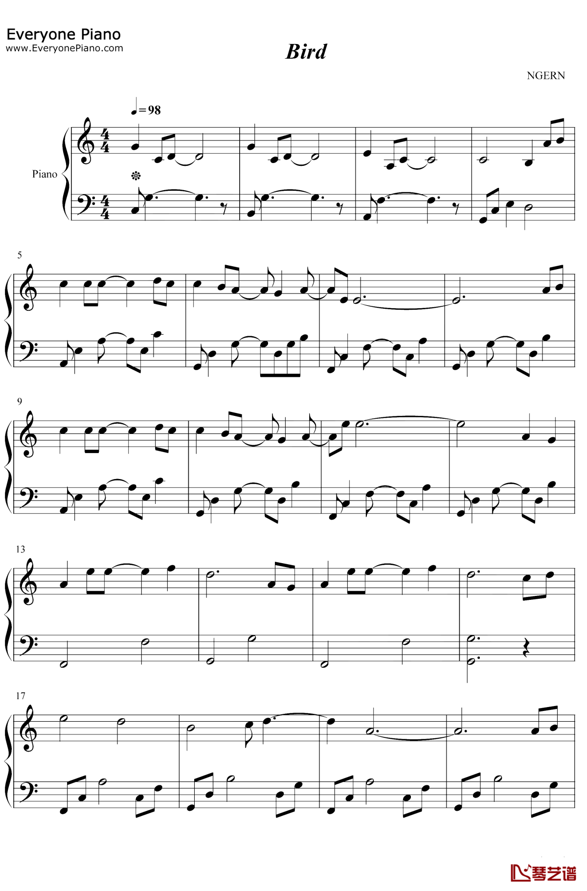钢琴松下优也《Bird》钢琴谱