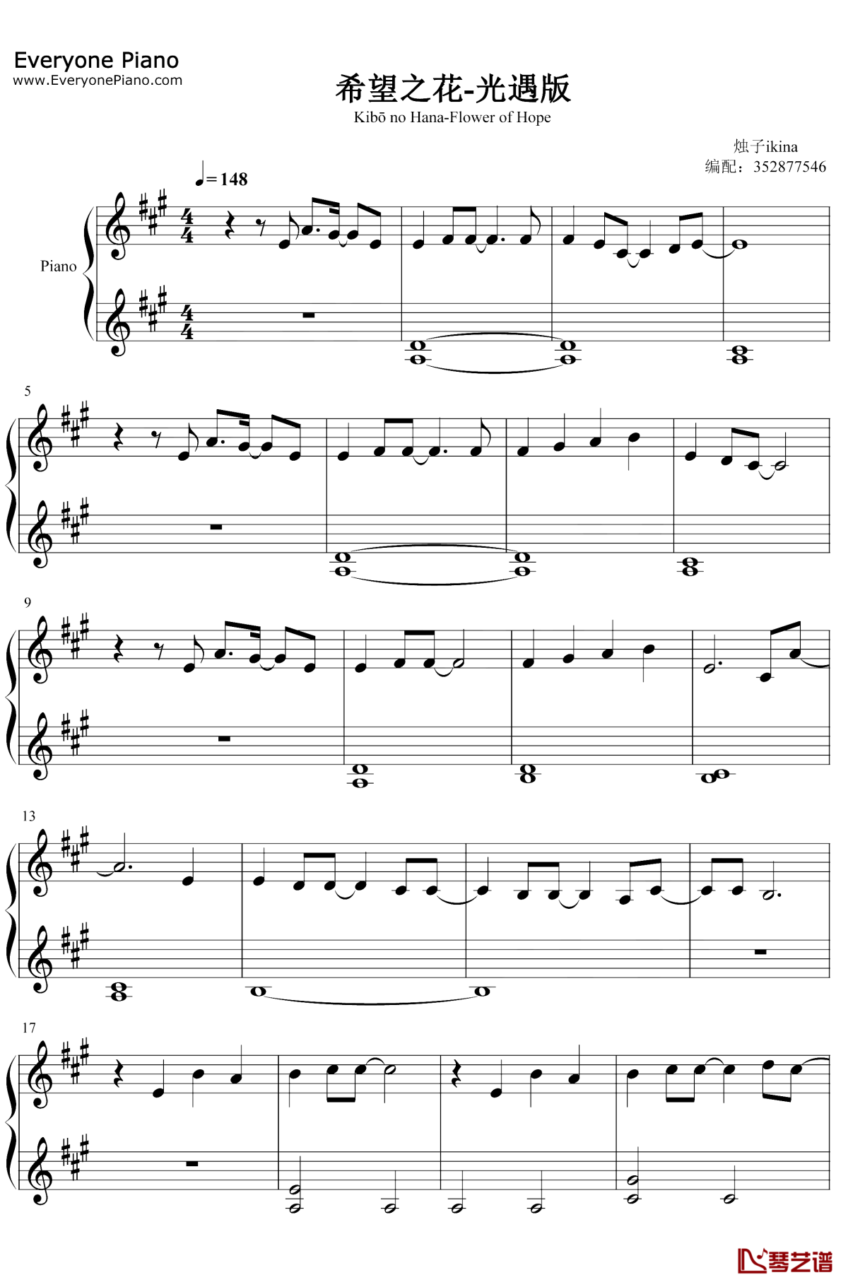 钢琴千菅春香《希望之花》钢琴谱