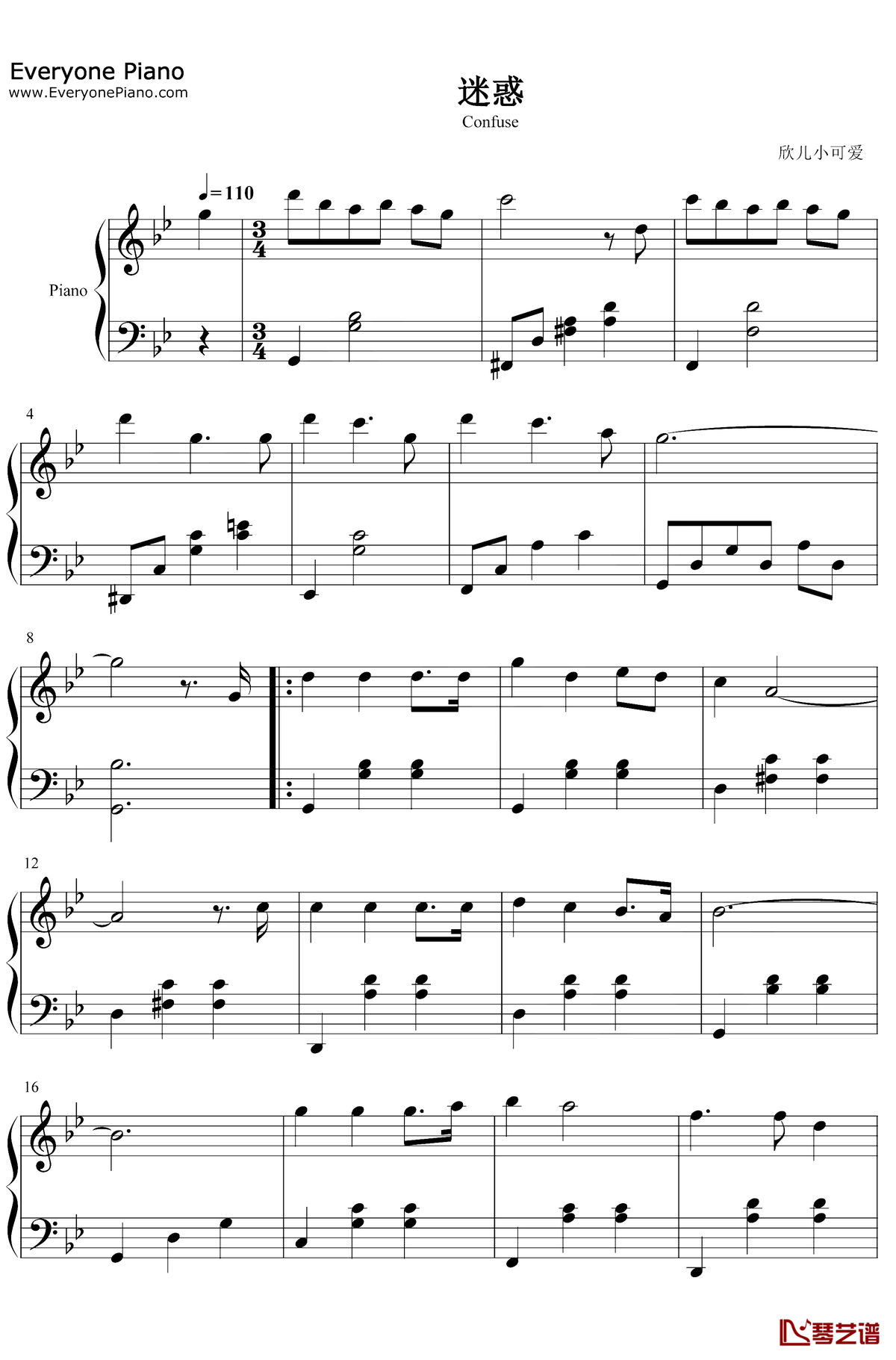 钢琴叶炫清《迷惑》钢琴谱(旗袍美探插曲)