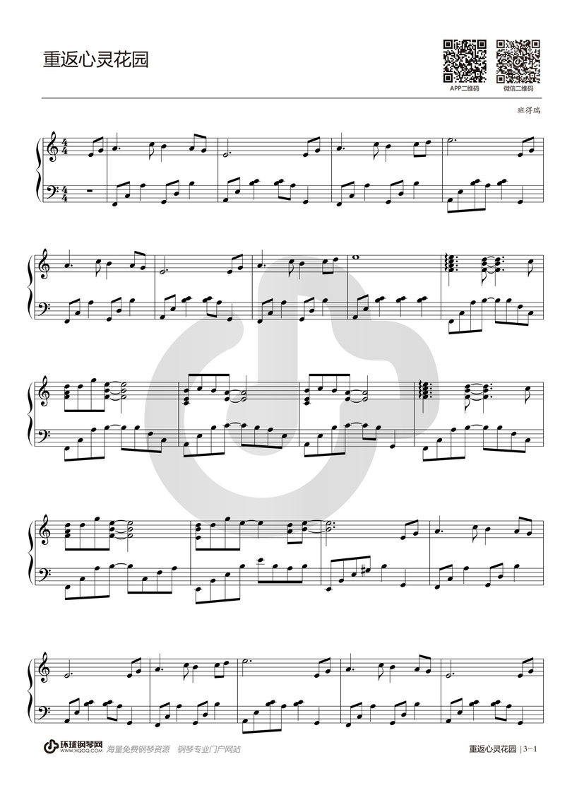 班得瑞《重返心灵花园》钢琴谱...