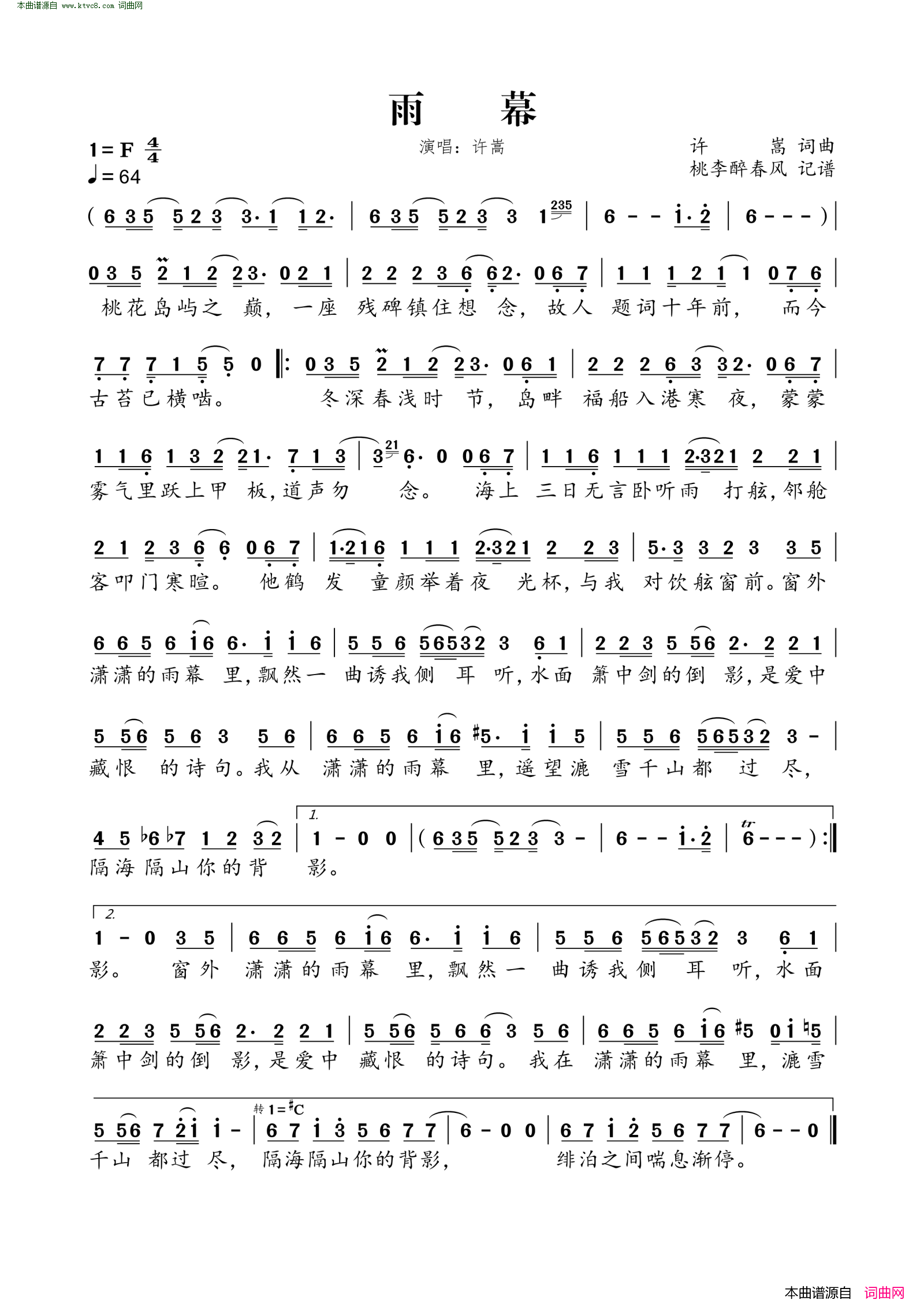 二小姐《有没有一种思念永不疲惫》钢琴谱...