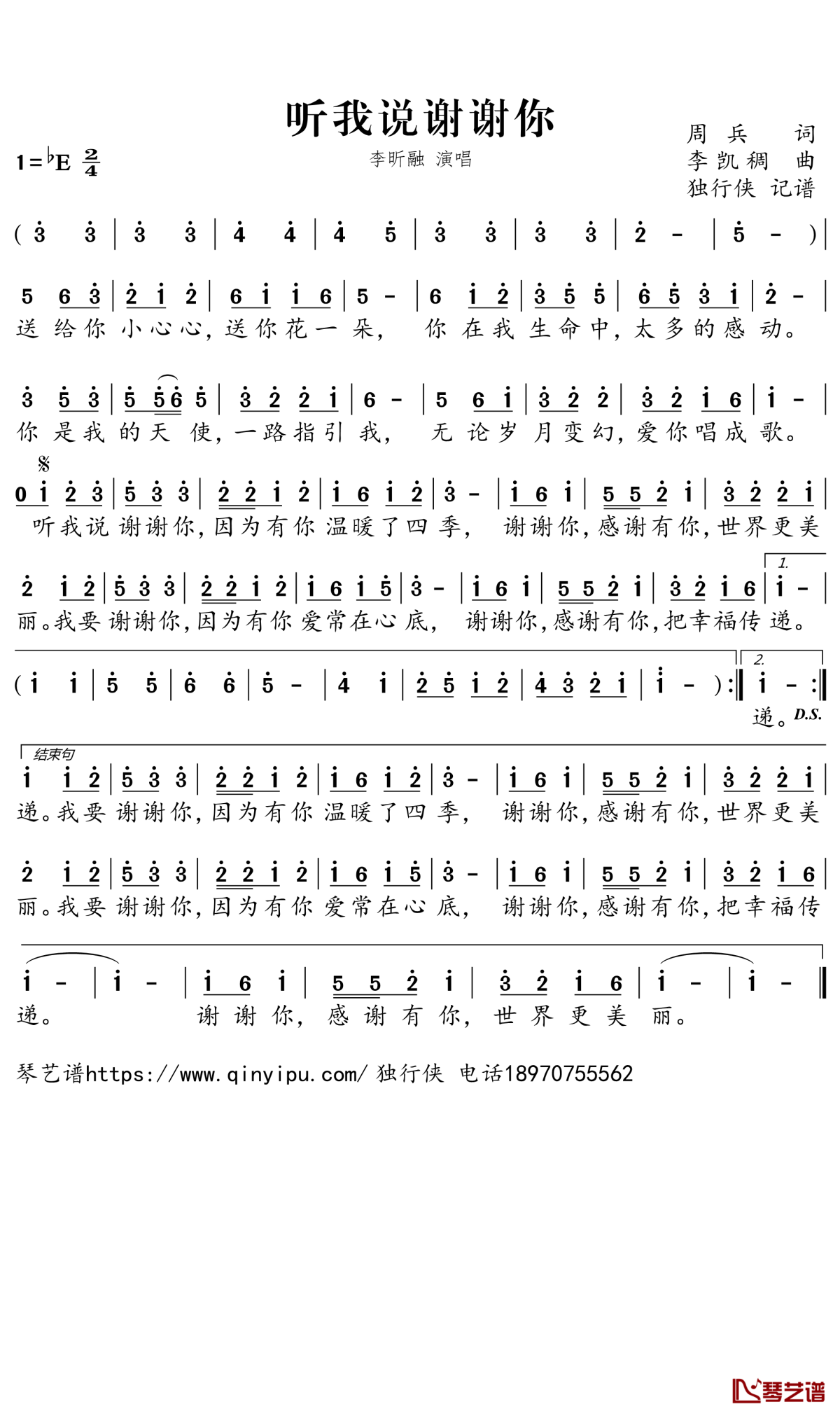 钢琴李昕融《听我说谢谢你》钢琴简谱