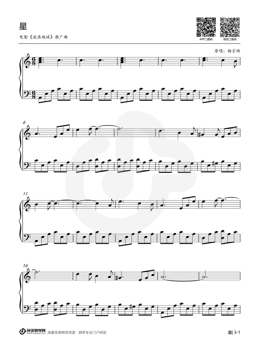 杨宗纬《星》钢琴谱(电影《流浪地球》推广曲)...