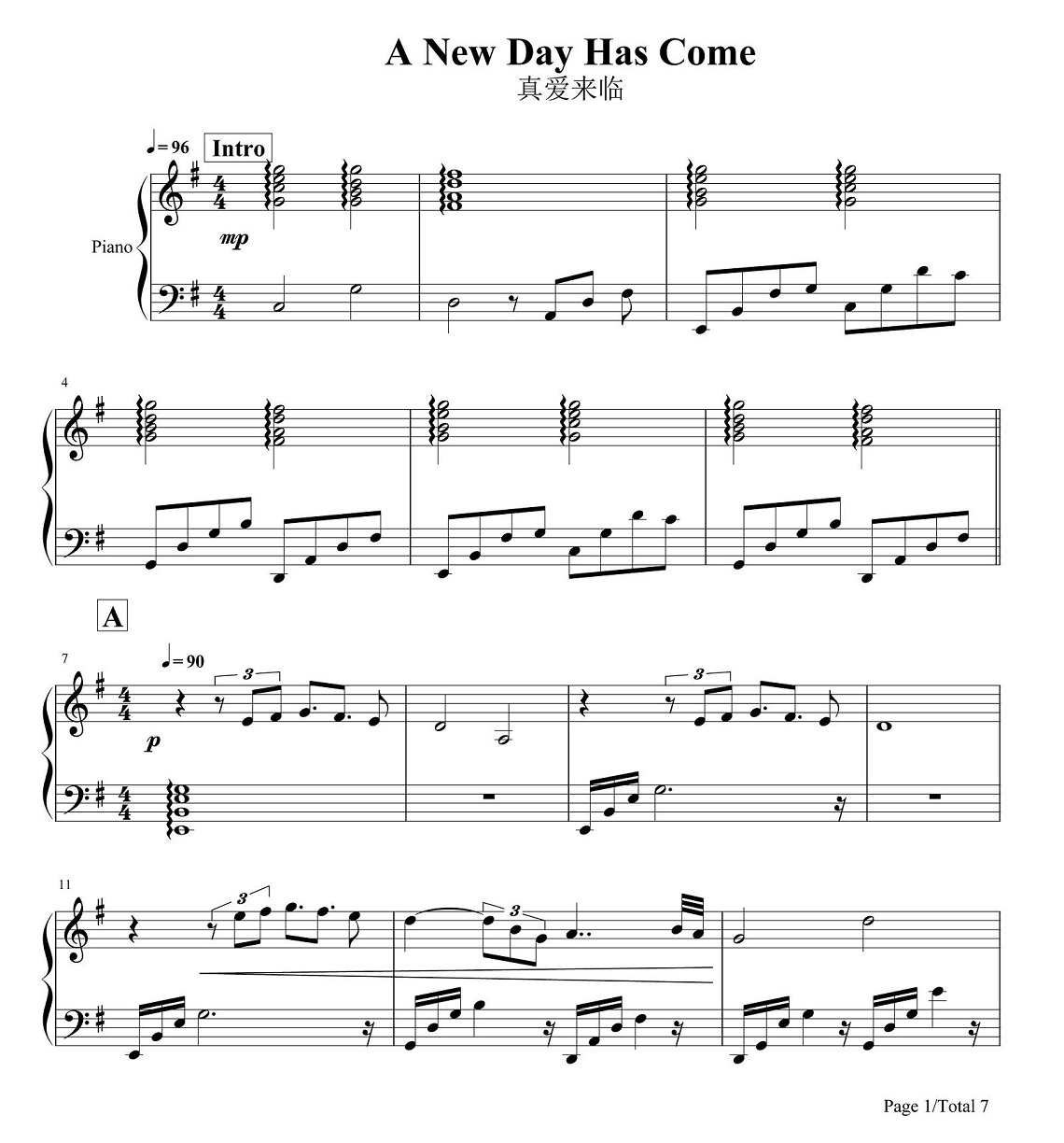 钢琴席琳·迪翁《A new day has come》钢琴谱
