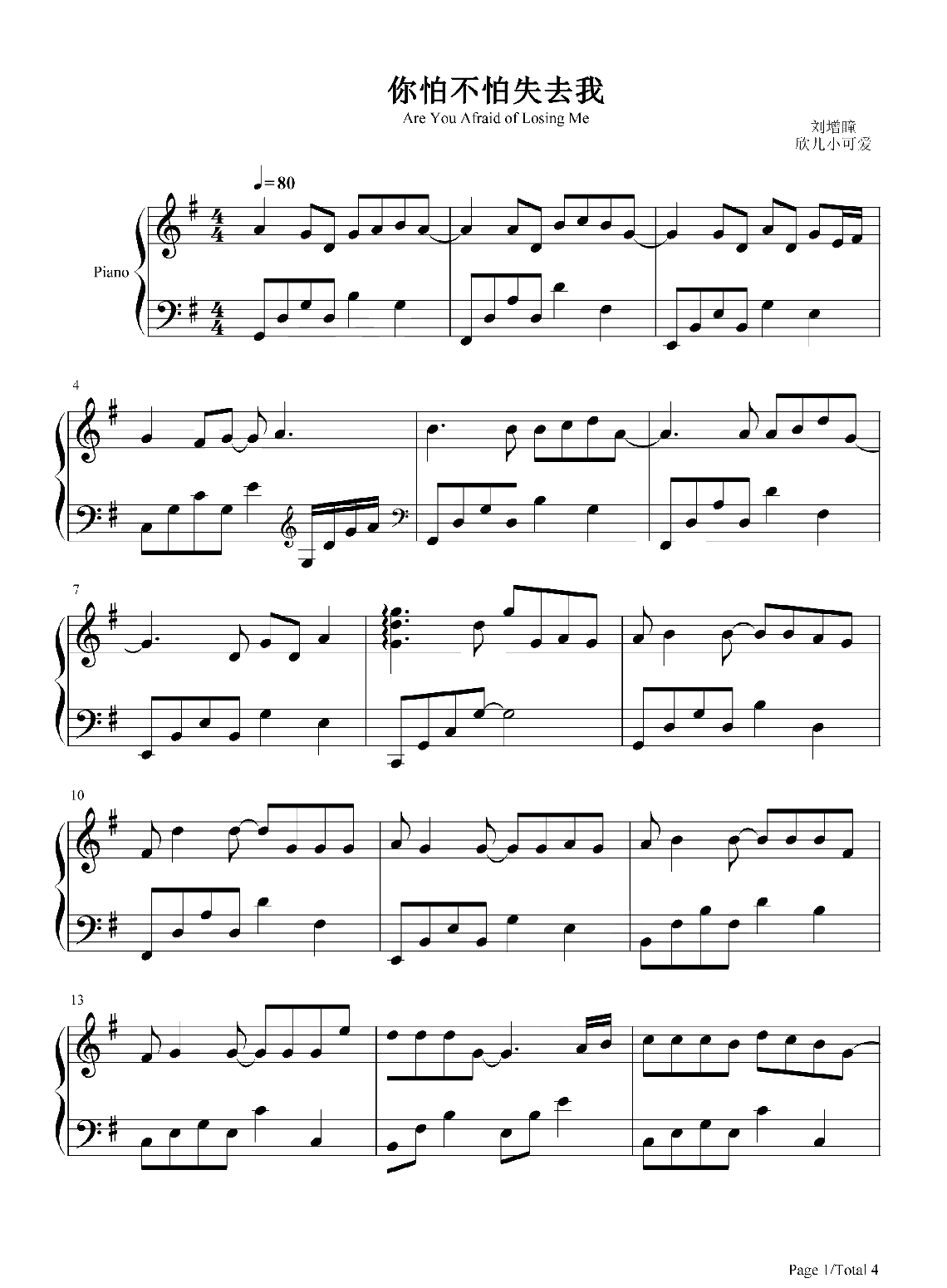 刘增瞳《你怕不怕失去我》钢琴谱...
