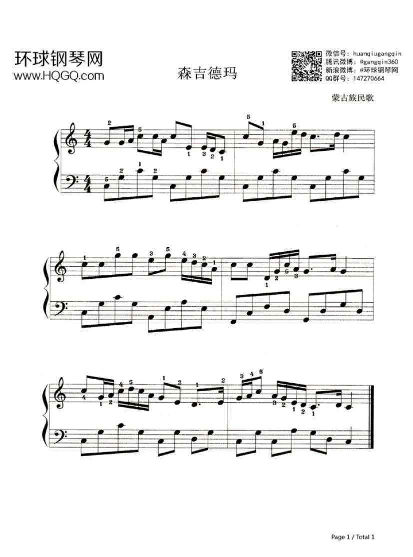钢琴森吉德玛《蒙古族民歌》钢琴谱