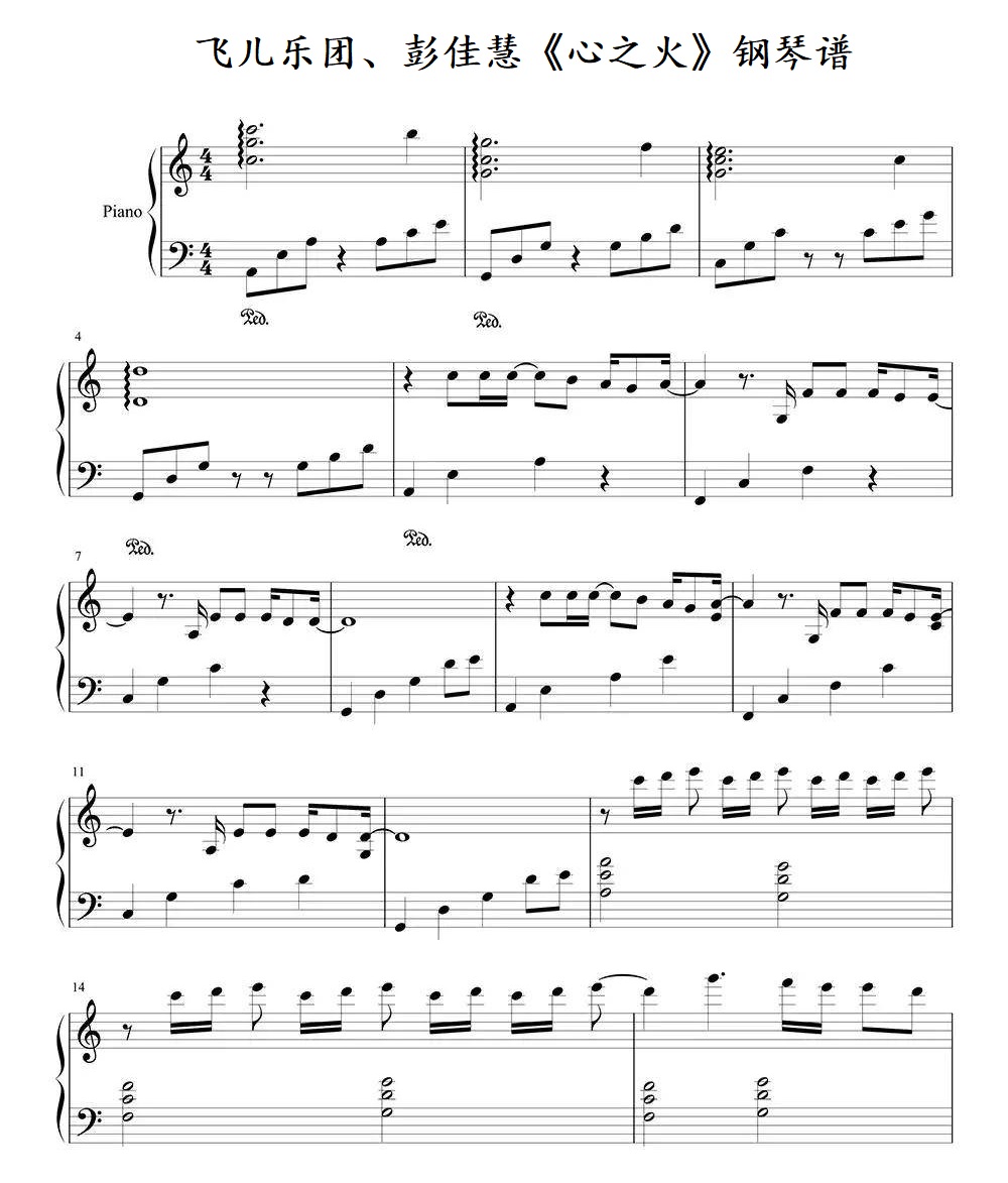 钢琴飞儿乐团、彭佳慧《心之火》钢琴谱